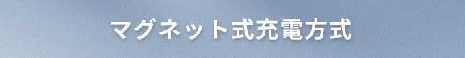専用の充電ケーブルを付属し、マグネット式の充電方式なので、ケーブルを充電接点に近づけると自動的に吸着して充電を開始します。