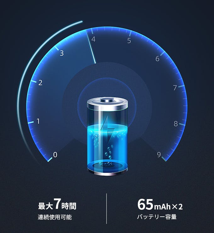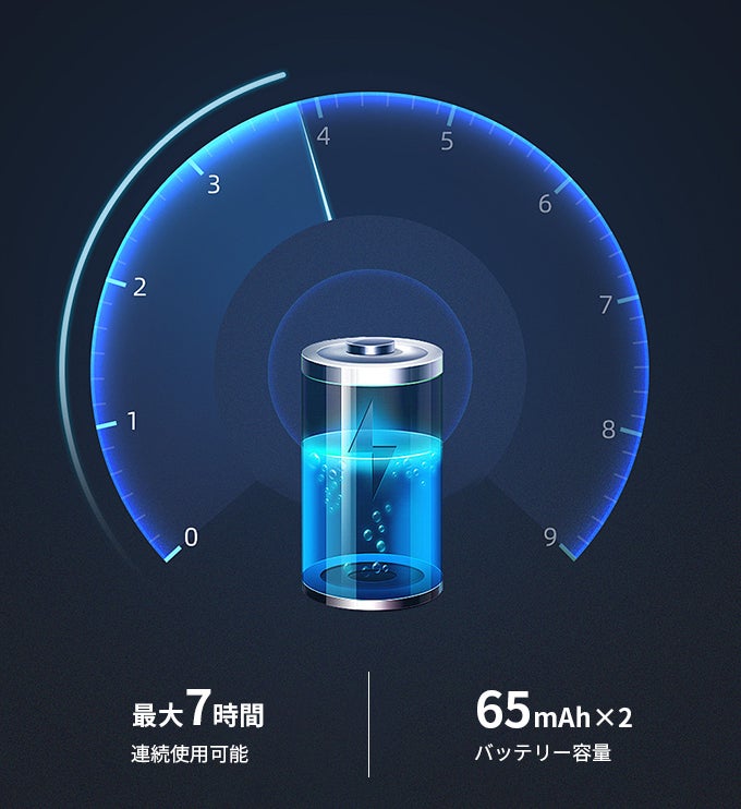 フル充電した場合は最大7時間程度連続ご使用いただけますので、一日中の様々な使用シーンで活躍してくれます。