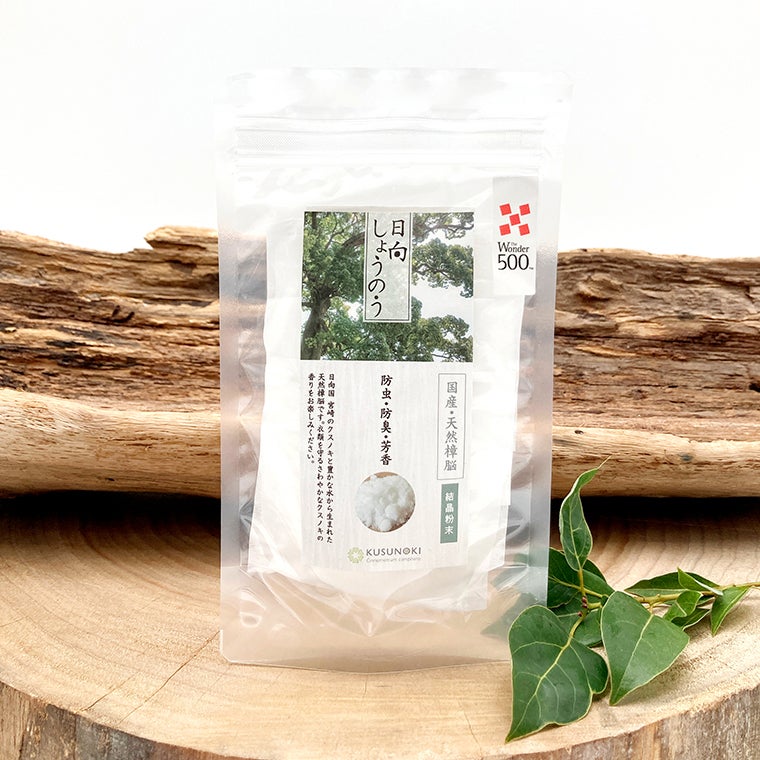宮崎県産のクスノキを原料として、蒸留&精製した完全国産の天然100%のしょうのうです。お肌の弱い方や化学合成物質にアレルギーのある方にとっても安心のやさしい使い心地です。