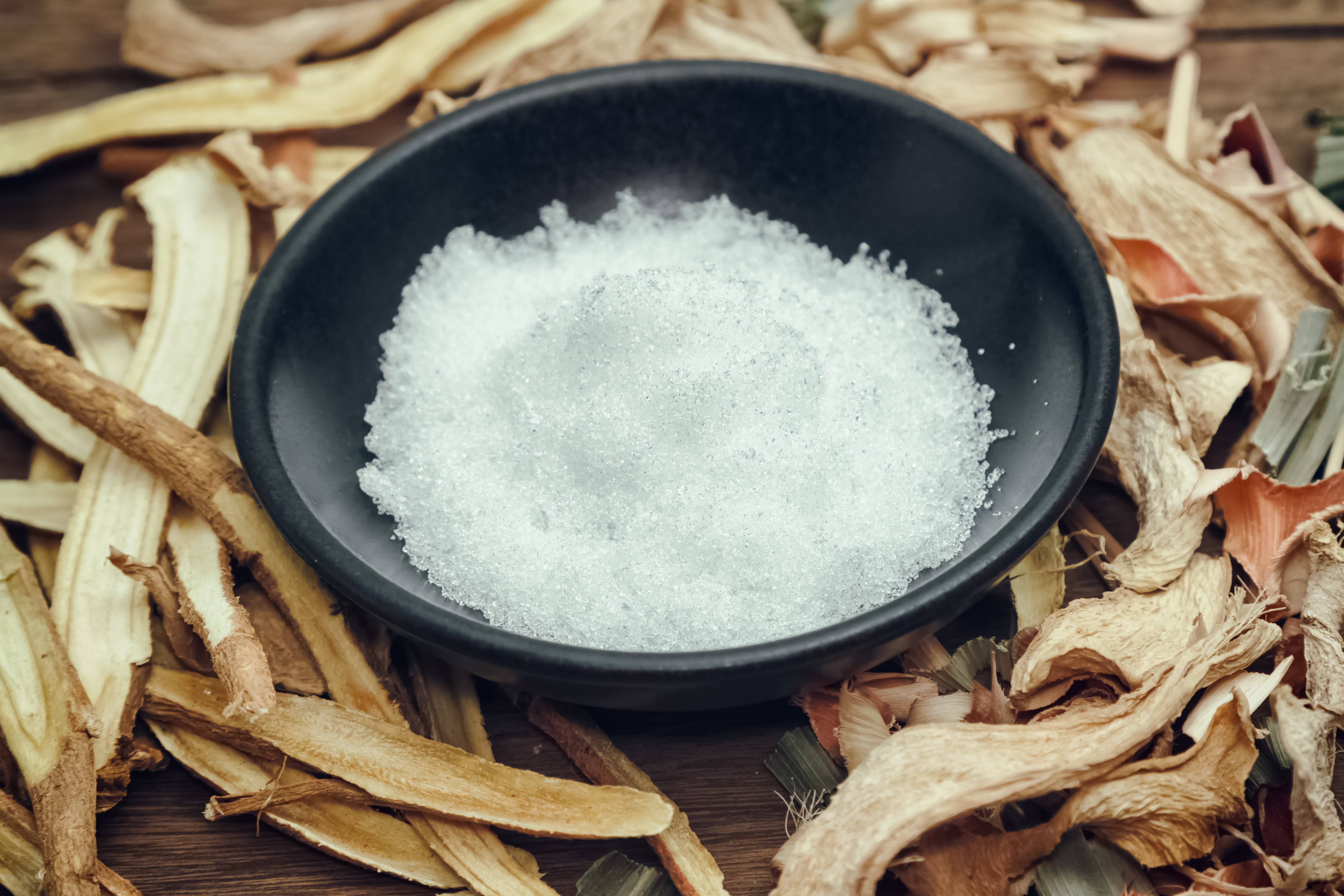 樟脳(しょうのう、camphor)は、クスノキ(Cinnamomum camphora)の樹木を水蒸気で蒸らして抽出される天然の有機化合物です。見た目は塩のような真っ白な結晶で、メントール系の爽やかな香りを持ちます。