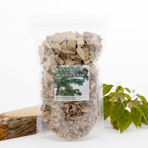 日向しょうのうの原料。クスノキを砕いてフレーク状にした天然100%のアロマチップです。クスノキの森の香りがさわやかな空間を演出します。