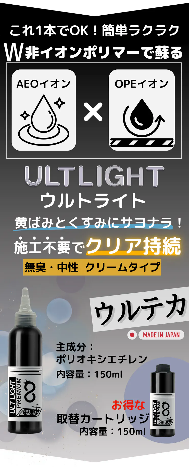 <内容量>ベスリューキャップ付きボトル:150ml取替カートリッジ:150ml