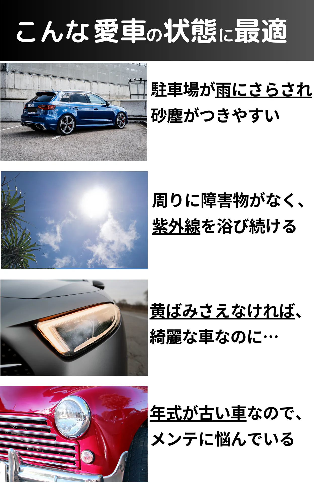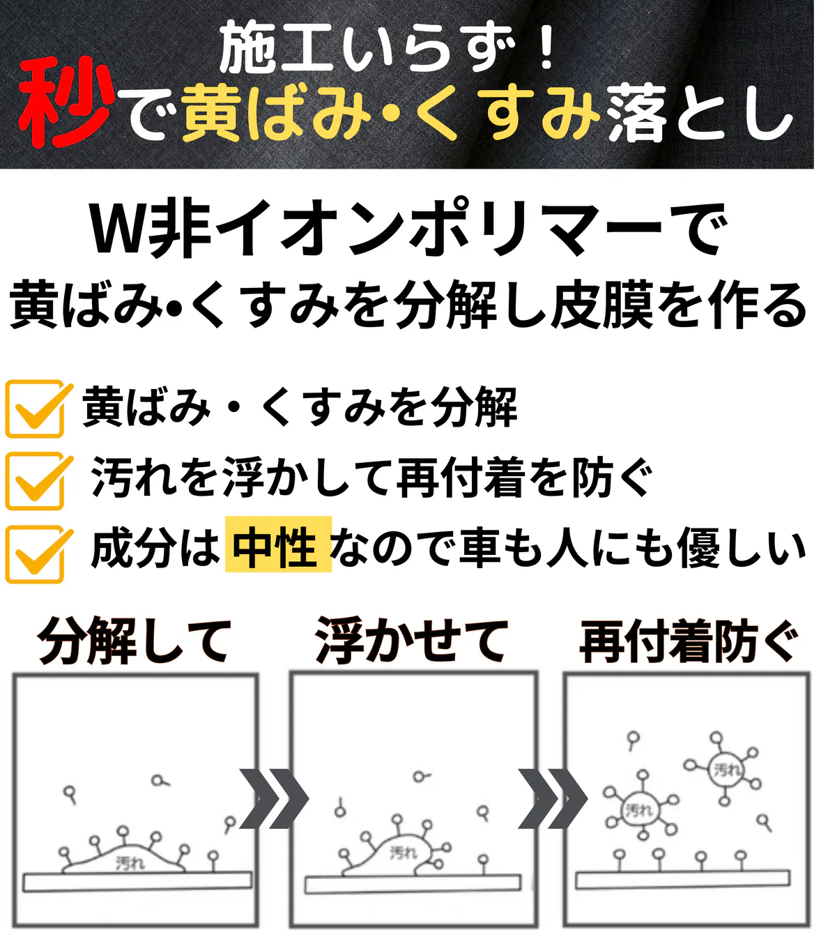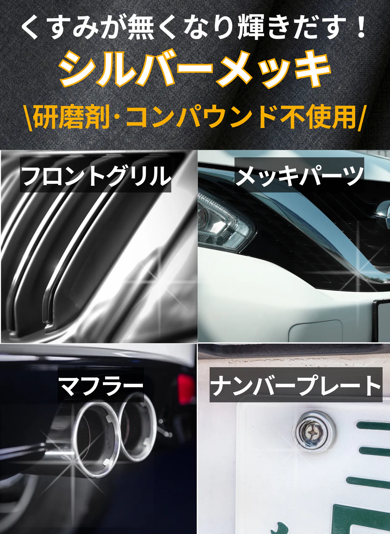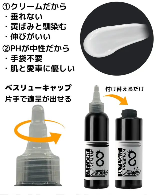 A:ソリッド系の白い塗装のボディには、水垢取りとしてご利用いただけます。パール、メタリック、濃い色のボディは、液が取りきれずに白っぽくなりがちなのでお勧めできません。