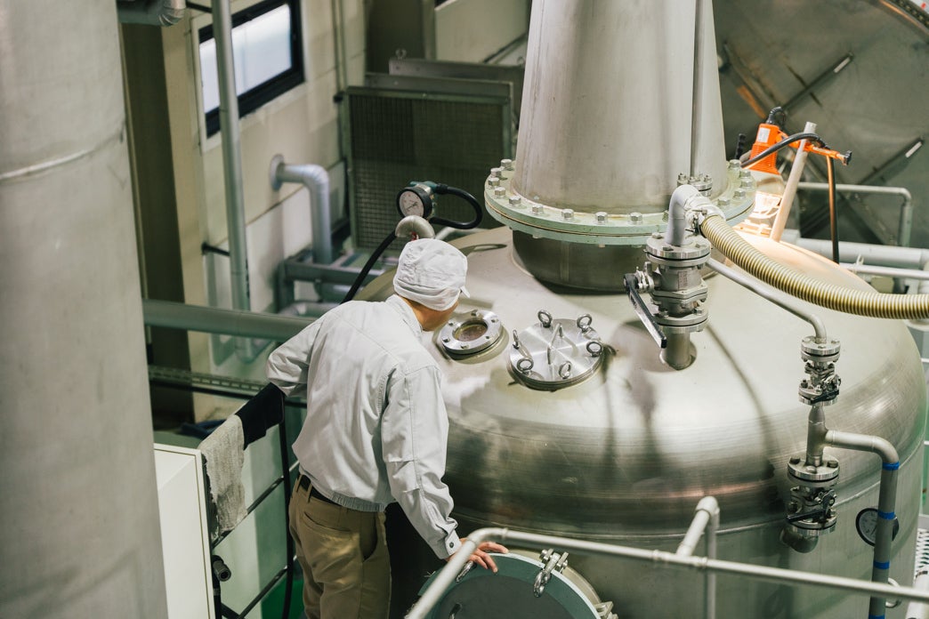 製造を担当いただいた濵田酒造さんは、鹿児島県のいちき串木野市に3つの蔵を構えられており、昨今は特に香り系の芋焼酎として知られる「だいやめ」(鹿児島弁でお疲れ様!という意味)を造られている酒蔵としても有名です。今回特に無茶を言い、酒蔵史上初めて、試行錯誤を重ねながら抹茶を使った麦焼酎ベースのリキュールを作っていただきました。濵田酒造さんを知っている人からすると「えっ?本当に!?」と驚かれるかもしれません。