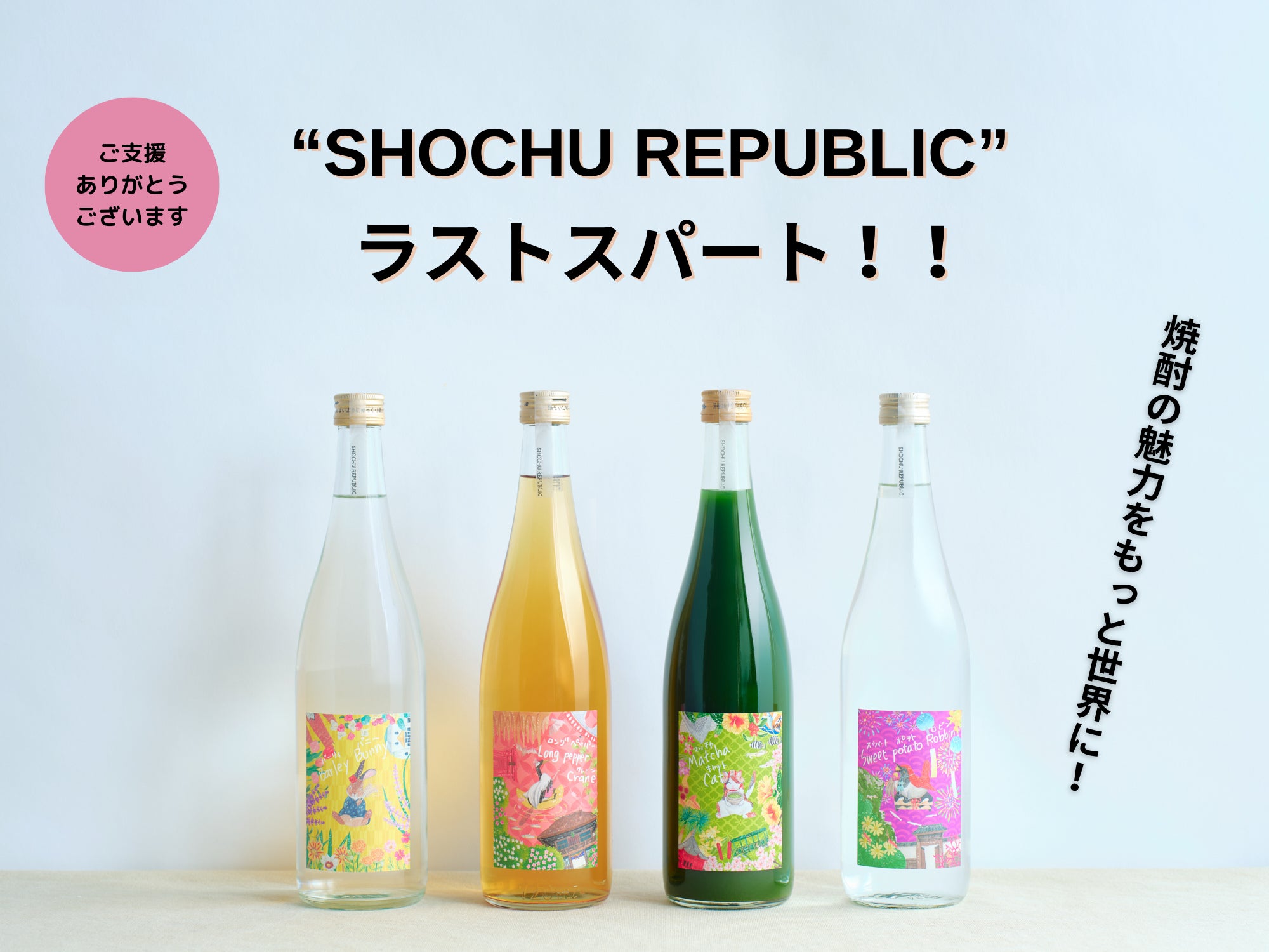 2024/09/25 12:27SHOCHU REPUBLICのブランドオーナーである南山物産の中山です。7/25にスタートした、オリジナル焼酎ブランド「SHOCHU REPUBLIC」のクラファンもあっという間に本日9月25日(水)が最終日となりました。おかげさまで正午時点、目標標金額の288%の御支援を頂いています。皆さまからの多くのご声援、そして大切な大切なお金を使って頂いての直接のご支援にあらためて感謝申しあげます。ありがとうございました。日本の焼酎を海外に伝えたい、広げたいという思いだけで、2018年に脱サラし、今年7年目に突入、無鉄砲で無知だからこそ、どうにかガムシャラにここまで走ってこれたのかもしれません。途中、自分自身はガンに罹患し、ステージ4だと宣告されて、一時は死を覚悟したこともありました。結果こうして快復して、元気になって、会社の仲間と、蔵元さまやメーカーさまと、国内外のお客さまと、まだまだ現実は厳しく悔しいことだって多々ある中でも、それでも苦楽を共にして一緒にビジネスが共にでき、自由に企画を考えさせてもらい、こういった挑戦をさせて頂ける贅沢に、改めて感謝をしなければいけないなと痛感しています。皆さまの御力添えのおかげにより、このクラファンを通じて、「おっ、SHOCHU REPUBLICが盛り上がっているな」「なんか良さそうだな、一度飲んでみようか」という前向きな気運を海外のお客様に対して醸成、アピールすることができました。輸出を目的にするブランドだからこそ、そこが最も重要でした。現時点ではすでに輸出が実現した台湾を皮切りに、韓国、香港、タイ、フィリピンなど各国への輸出が内定しています。もちろんここからが大事だと思っています。一度の輸出で終わっては意味がなく、SHOCHU REPUBLICを継続して輸入会社さまを通じて輸入してもらい、各国で拡販していただく。海外のビギナーの方に「焼酎ってなかな面白いね、だったら他の銘柄も挑戦したい。オーセンティックなものも買ってみよう」REPUBLICをきっかけに、そんな風に思って頂き、焼酎の道が少しでも広がっていくことが、我々の目標であり、このブランドを立ち上げた狙いです。クラファンを通じて、貴重なきっかけと大きな勇気を私たちは頂きました。もちろん、今回のSHOCHU REPUBLICを担う4蔵元さま(紅乙女酒造、豊永酒造、濵田酒造、宇都酒造)も同じように皆さまからパワーを頂きました。改めて御礼もうしあげます(__)皆さまの御多幸と御健勝を祈念し、また楽しい焼酎ライフをどうかお過ごしください。南山物産株式会社代表取締役社長中山大希追伸:ほぼ荻窪におります。近くにお越しの際は、ぜひ会社にもお立ち寄りください。CAMP FIRE最終日、ラストまで何卒よろしくお願いします!https://camp-fire.jp/projects/763066/view?utm_campaign=cp_po_share_c_msg_mypage_projects_show もっと見る