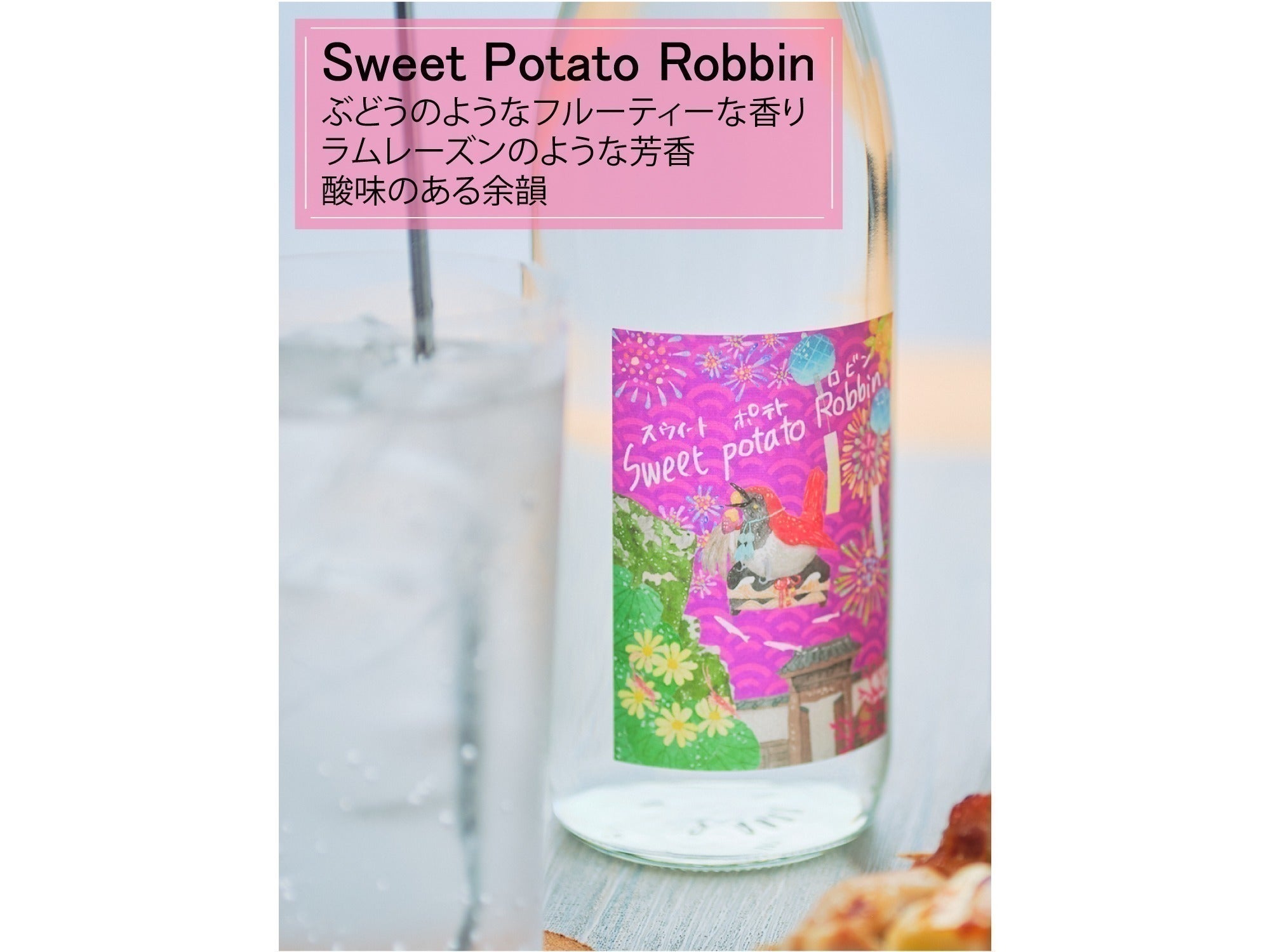 ぶどうのようなフルーティな香り、ラムレーズンのような芳香、酸味のある余韻。 さつまいもの中でも有数の糖度を誇る紅はるかを使用した国産クラフト芋焼酎。ボトルごと冷蔵庫で冷やしてワイングラスで飲むもあり。強めのソーダで割るとまるでグレープソーダのよう。もちろん香料は不使用なのに、さつまいも由来の不思議な甘い印象的な香りが楽しめます。ペアリングはトマトパスタやモッツァレラチーズを使ったお料理など、イタリアンとの相性も◎