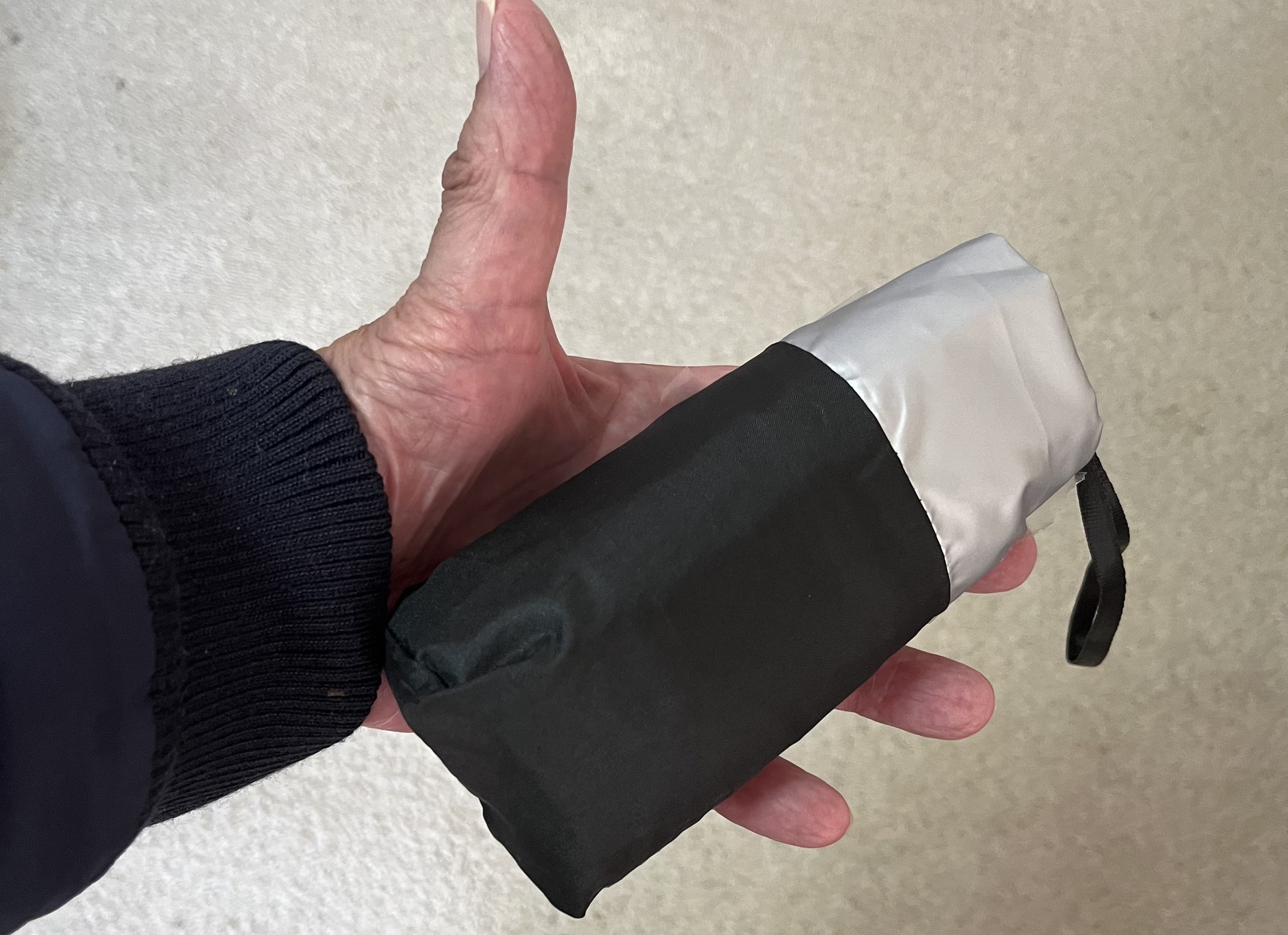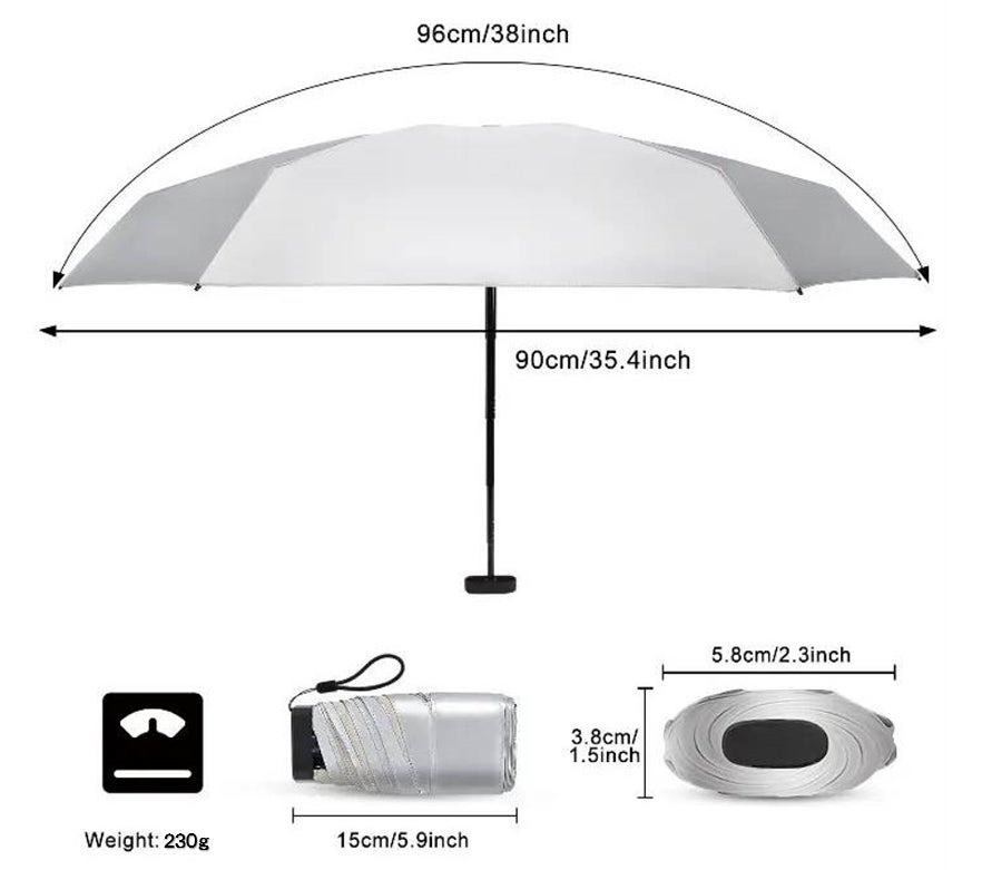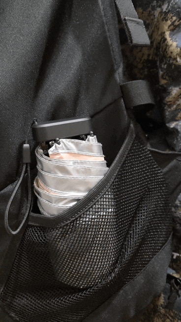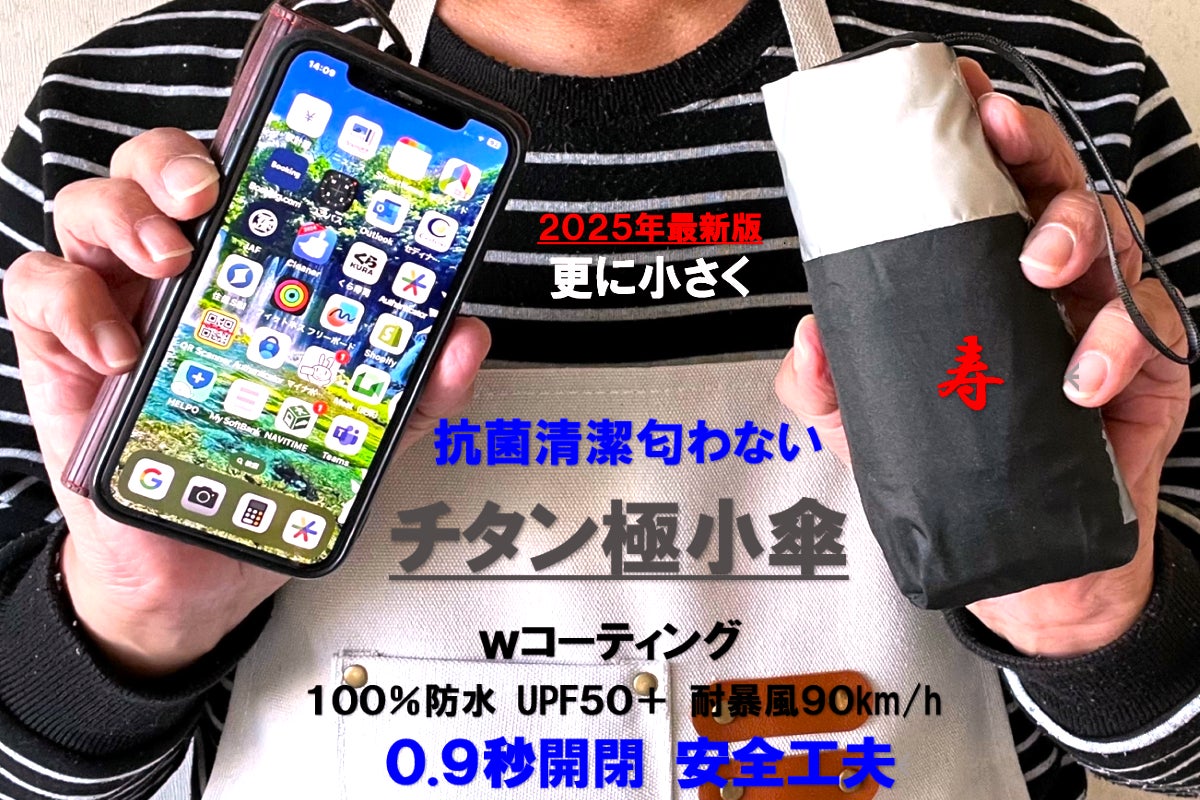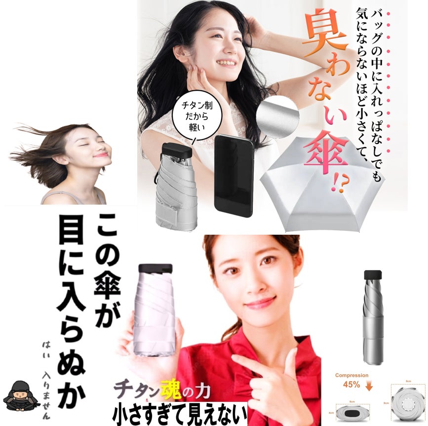 この傘は、チタンをWコーティングし、強い雨も紫外線もシャットアウトし、チタンの抗菌作用で匂わず、特殊構造のアルミ合金のフレームで風にも強く、極限まで小さくたためる、驚くべき極小傘なのであります。