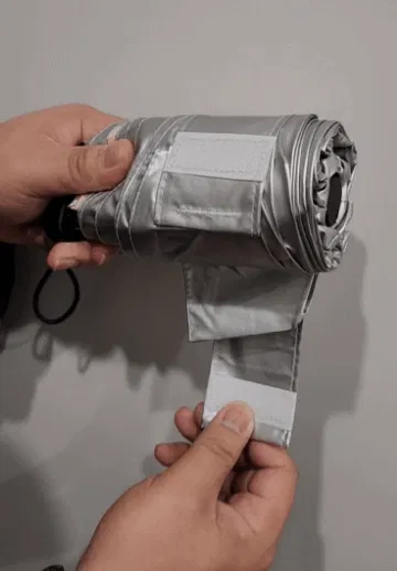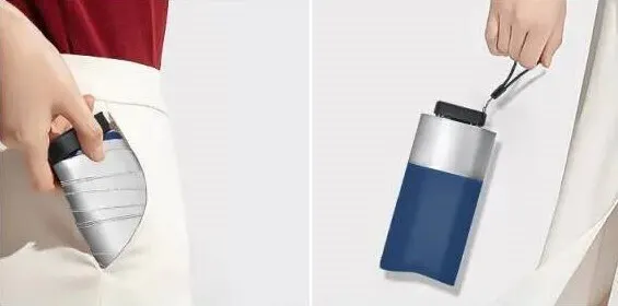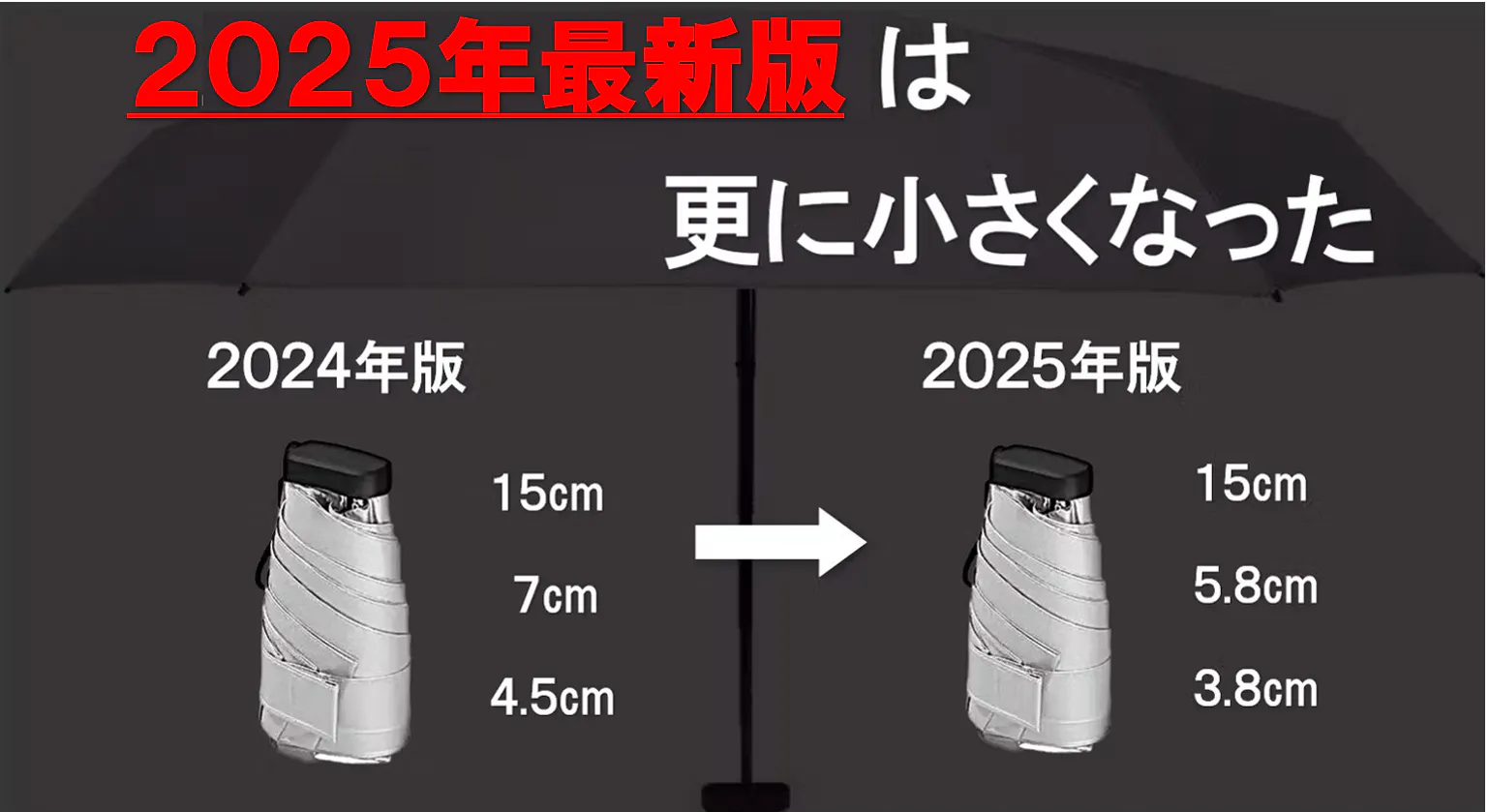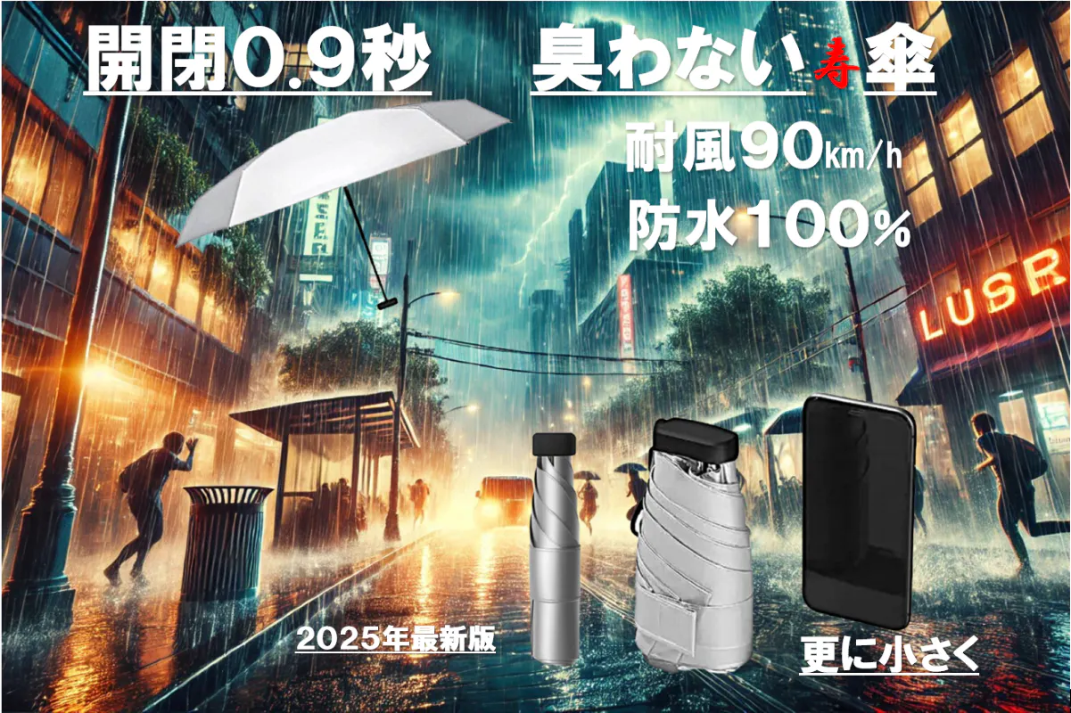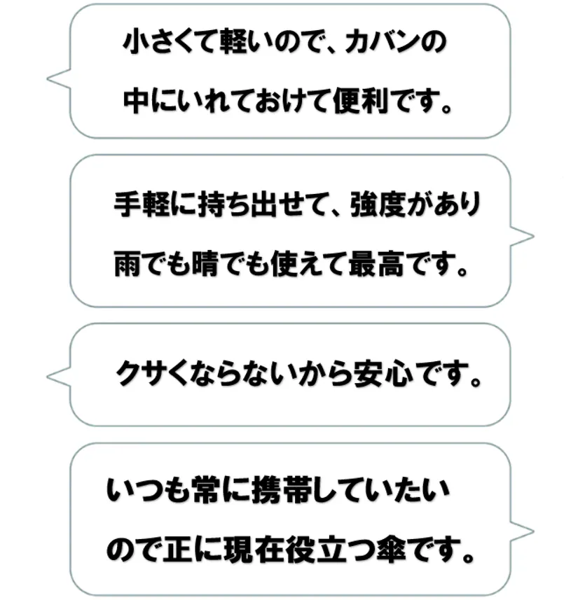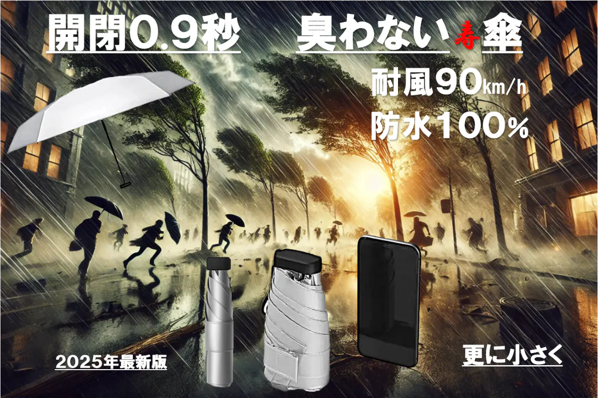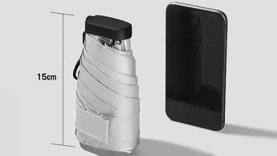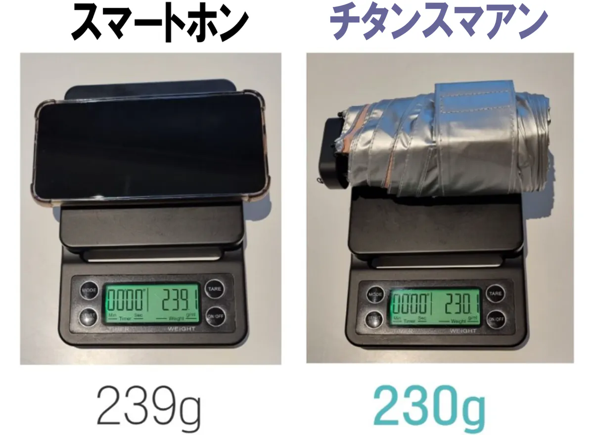 この傘は、チタンをWコーティングし、強い雨も紫外線もシャットアウトし、チタンの抗菌作用で匂わず、特殊構造のアルミ合金のフレームで風にも強く、極限まで小さくたためる、驚くべき極小傘なのであります。