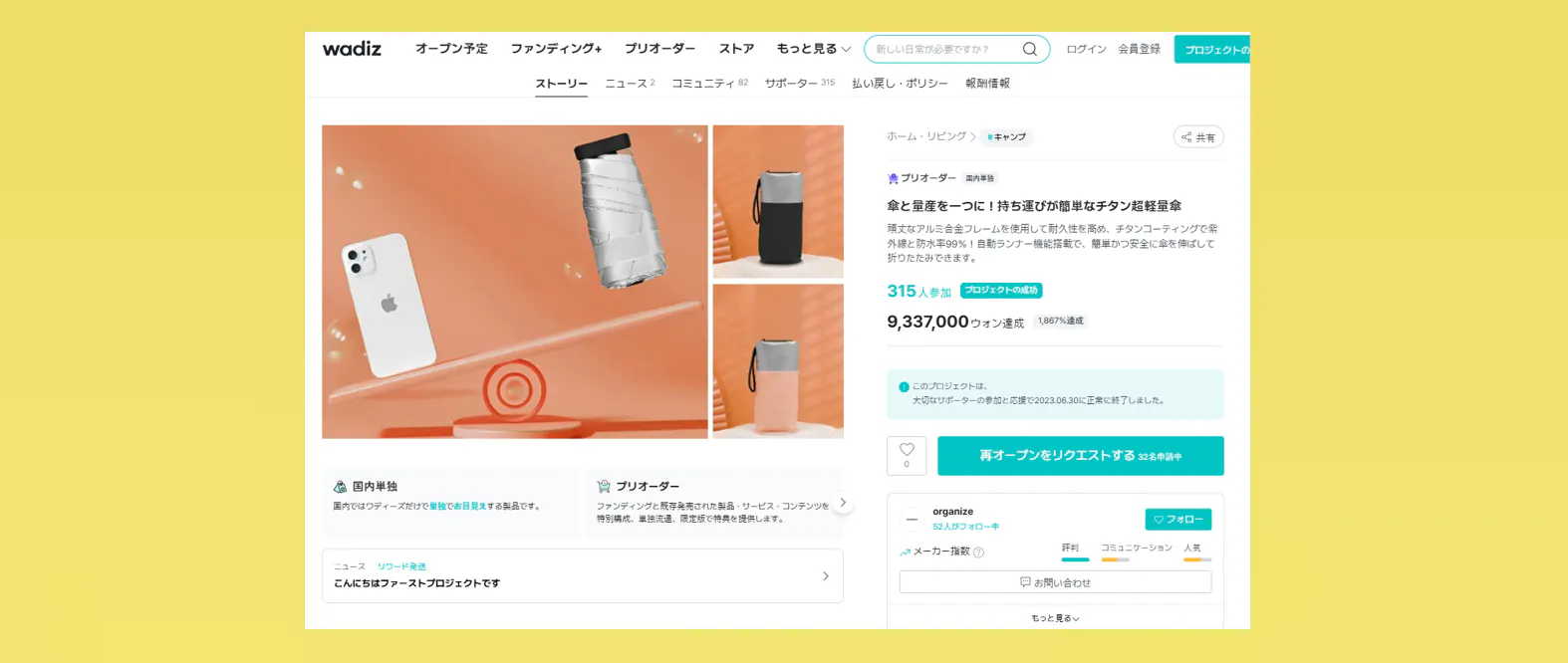 ・プロジェクトの属性:輸入商品(日本仕様の商品を販売業者として、皆様にお届けします。)、輸入代理
