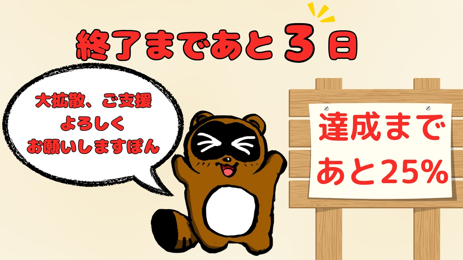 目標達成まであと少し! みんなの力が必要だぽん!