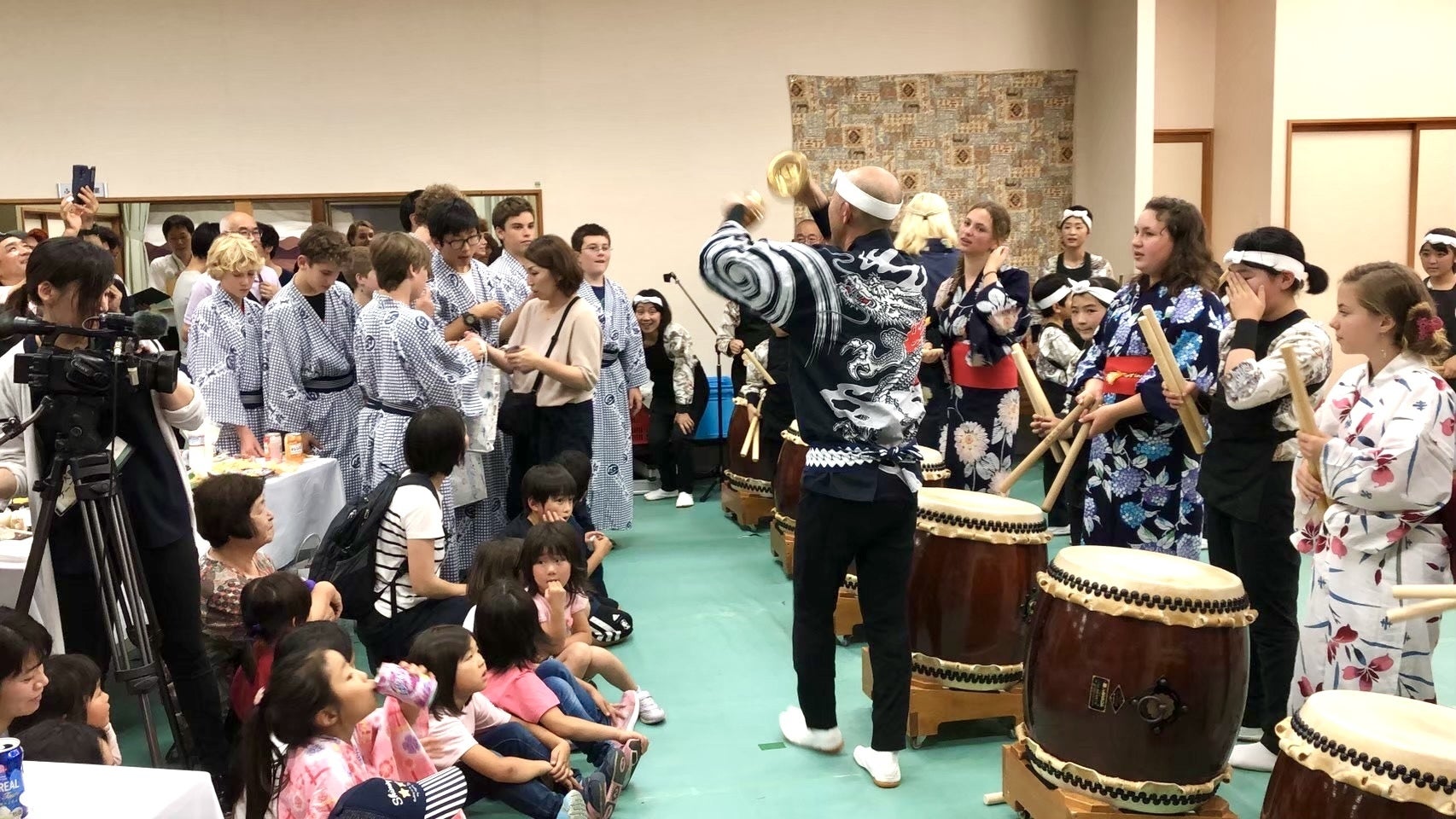 さよならパーティーの太鼓演奏で大盛り上がり