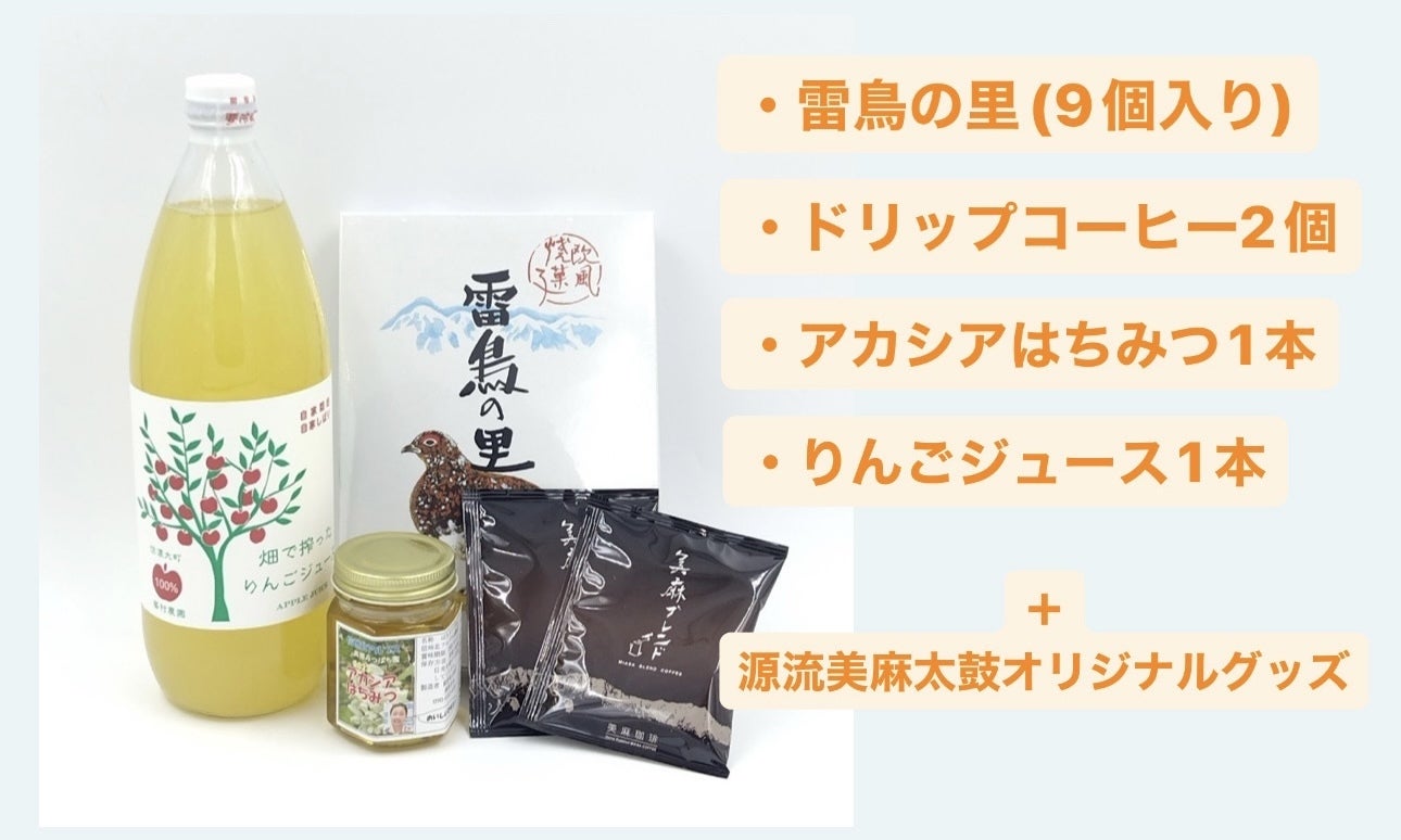 また50000円コースにご支援いただいた方には、特産品セットに加え、源流美麻太鼓のオリジナルグッズも進呈いたします。こちらは届くまでお楽しみとさせていただきます!