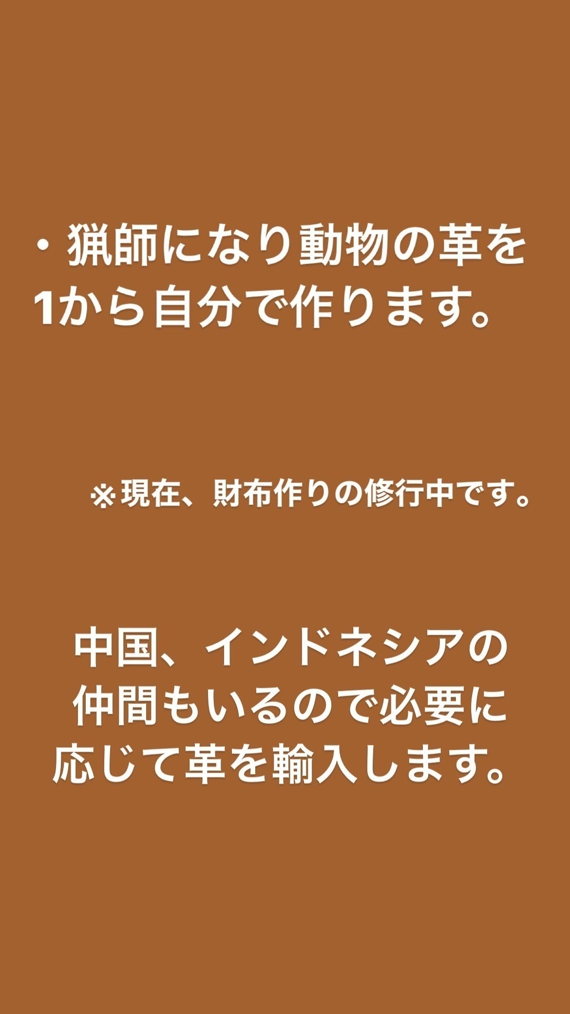 物の価値ってなんですか?有名ブランドたくさんあります。その価値を本当に知ってる人は世界に何人いるのでしょうか?本当にいいものってのは値段の付けれない物だと思います。だからこそ俺が1から魂こめて世界に一つだけのカッコイイ財布をプレゼントしたいんです。適当に外国で大量生産された物なんかより、何百倍もかっこよくて、持ってるだけで何あの財布、絶対お金持ちって思われるような財布を身につけて欲しい。これも何かの縁です。ぜひ皆さん俺の行動力とセンスに投資して欲しいです。