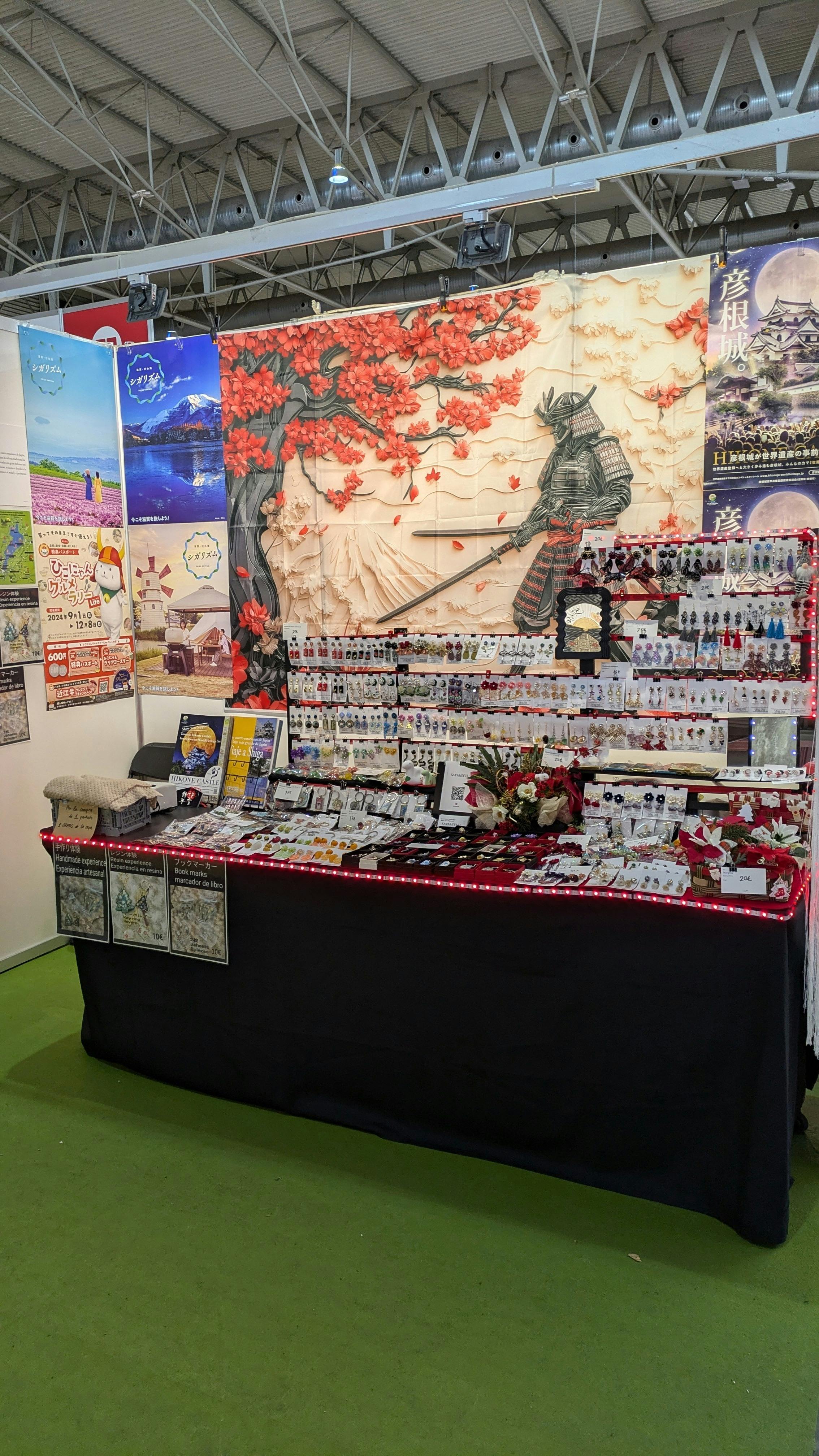 またブース内に、滋賀県観光振興局様よりシガリズム・彦根市役所様より彦根城・ひこにゃんのポスターを頂き掲示にパンフレット配布と滋賀の魅力を最大限にアピールする事も出来ました。興味を持って頂いた方の問いには、通訳さんが説明してくれてました。