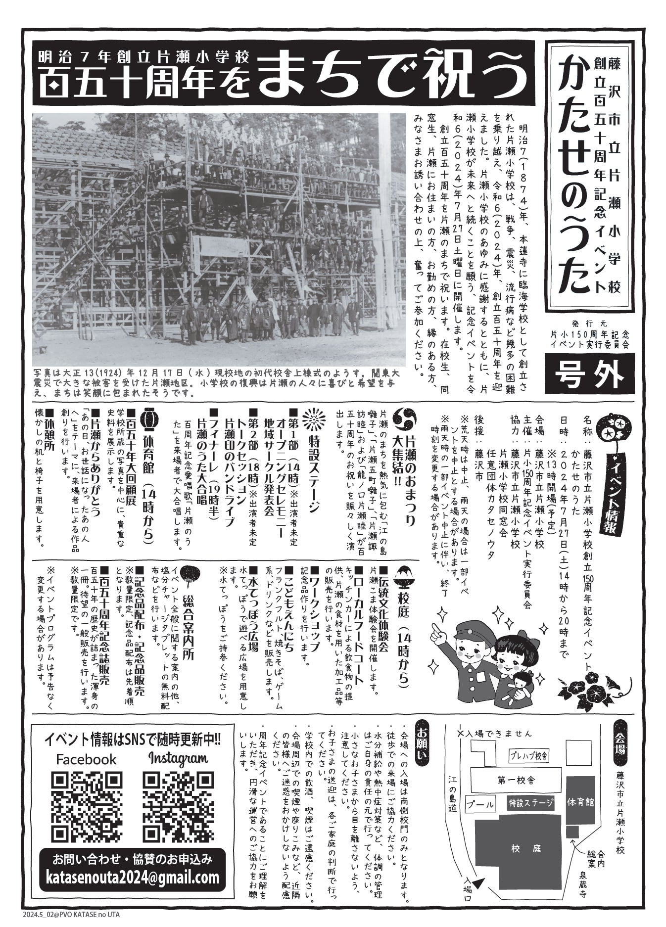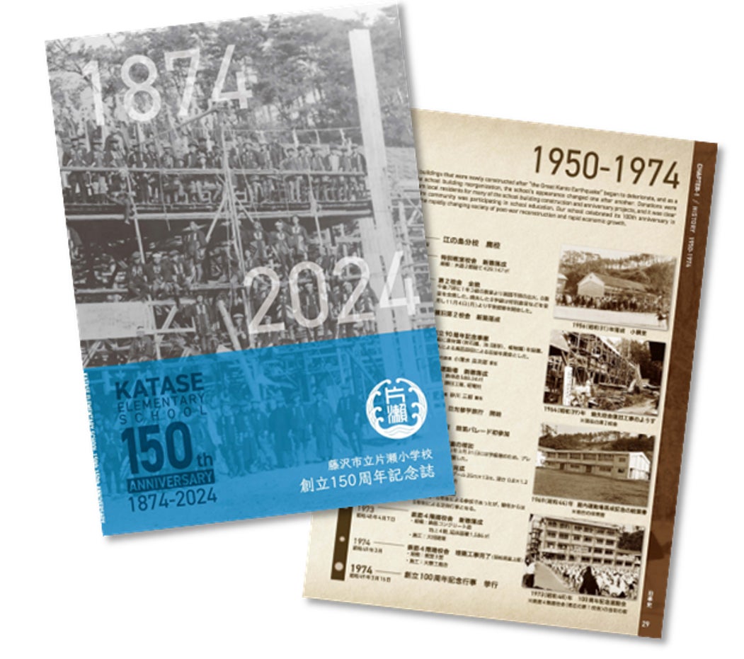 片瀬小学校創立150周年を記念して作成した「記念誌」とイベント実行委員会からの感謝の気持ちを込めた「お礼メッセージ」をお送りします。