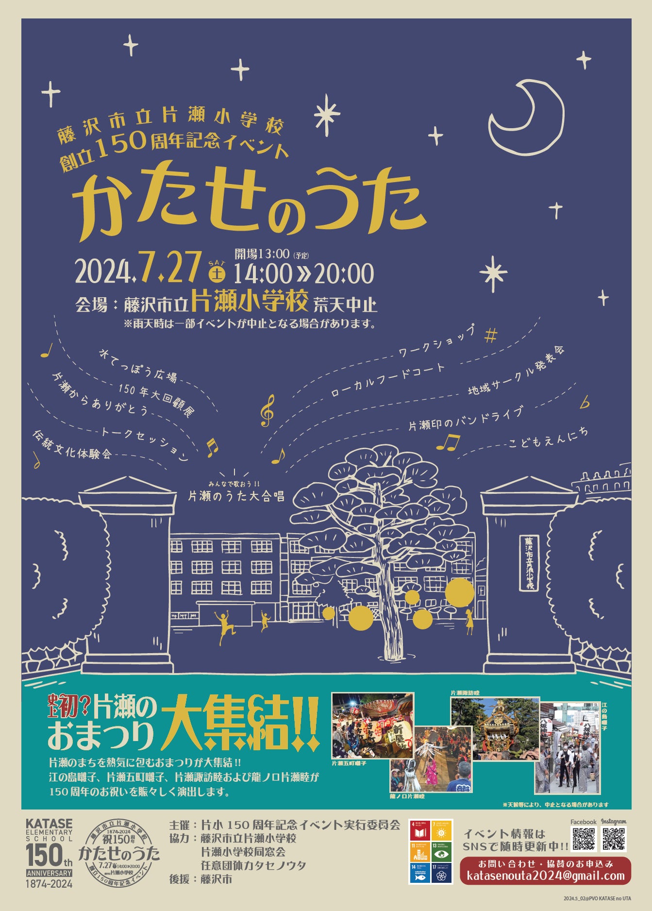 今年(2024年)7月27日(土)に母校である藤沢市立片瀬小学校にて、創立150周年を記念したイベントを企画しました。