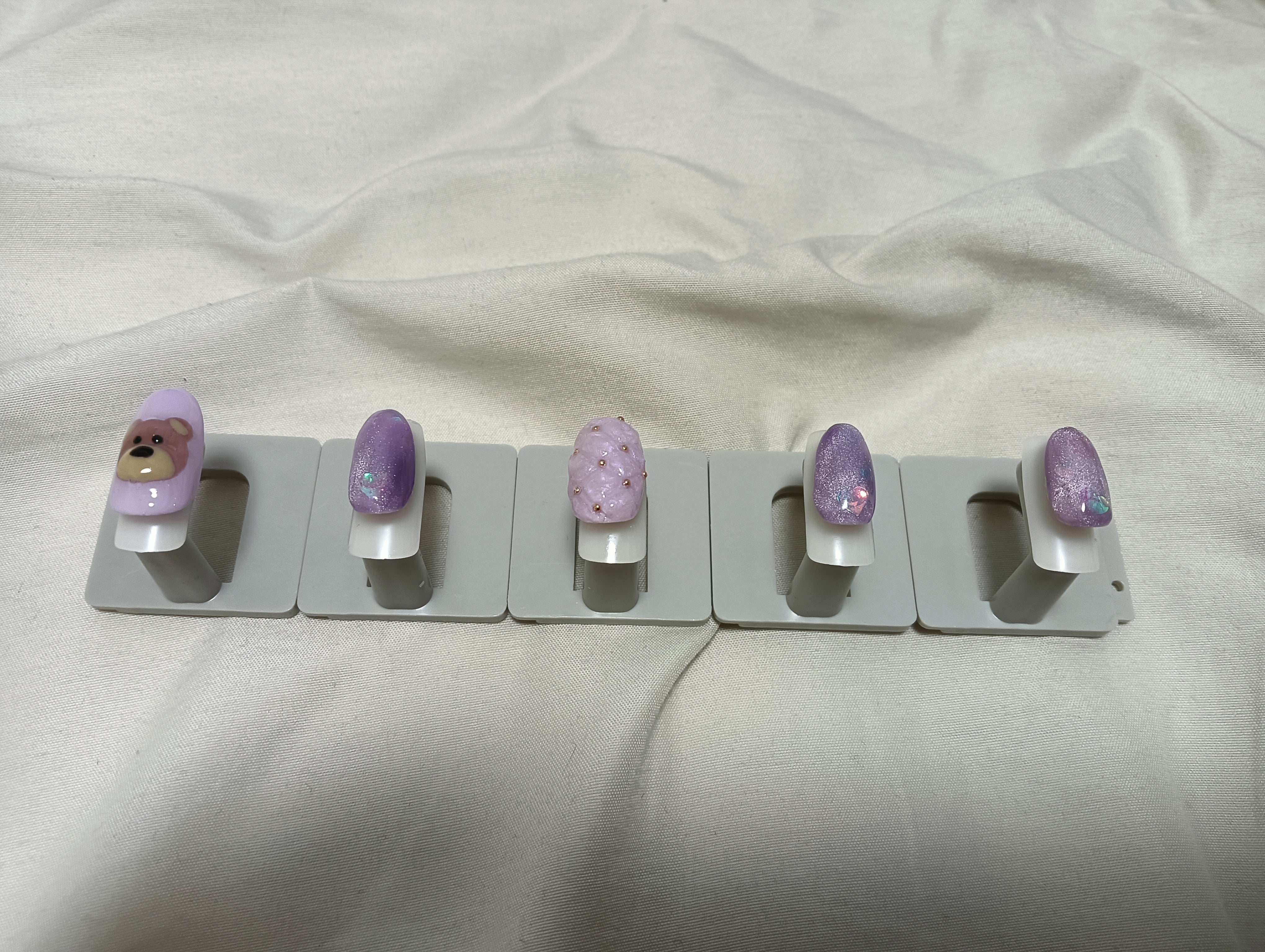 これまでに、趣味として様々なデザインのジェルネイルを試作してきました。友人や家族にも実際に使用してもらい、その反響からさらに改良を重ねてきました。現在は、高品質な材料を用いたネイルチップ製作に必要な機材や材料を揃える段階にあります。また、販売に向けたブランディングやパッケージデザインにも取り組んでいます。