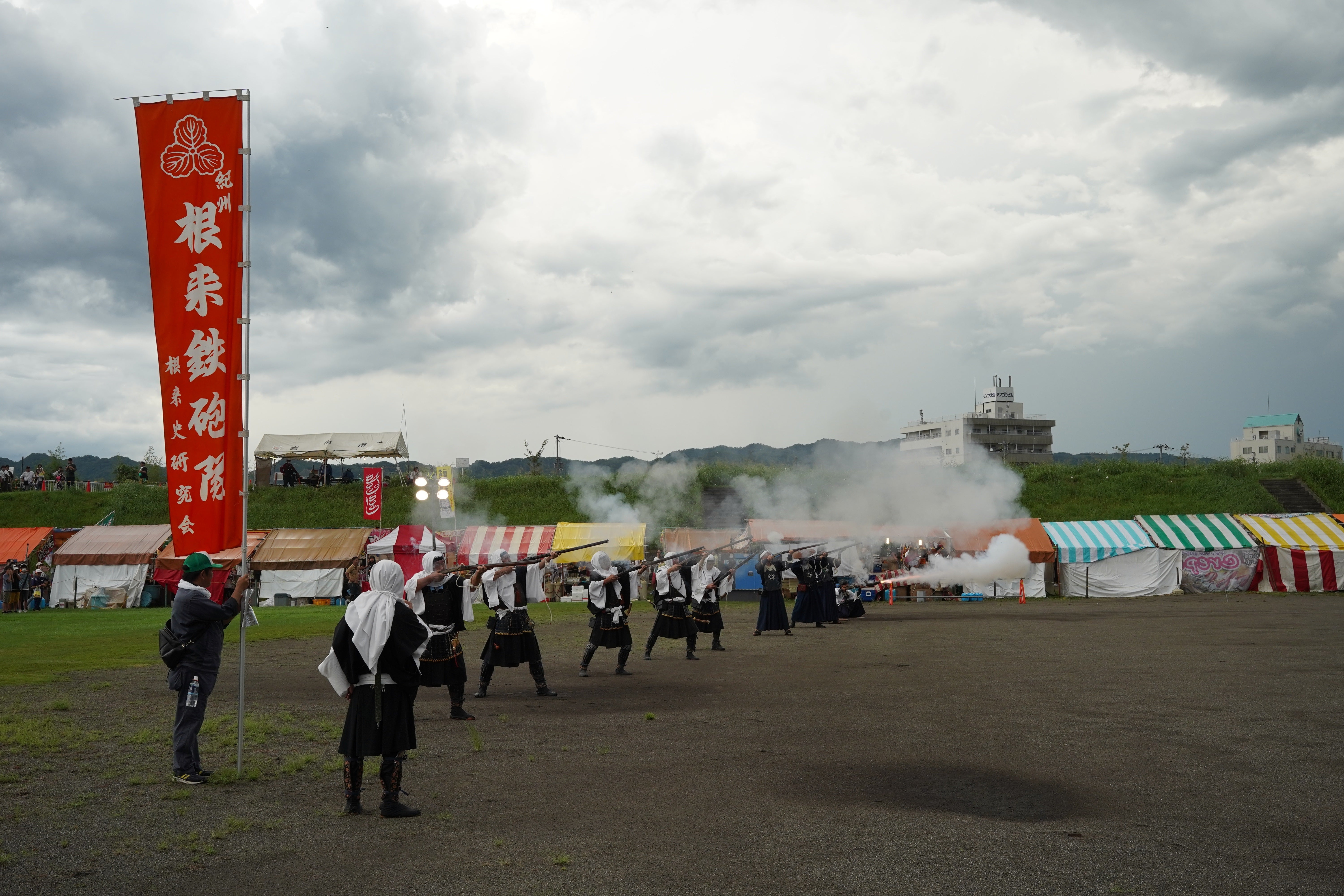 岩出市の根来鉄砲隊による迫力のある演武から夏まつりがスタートします。