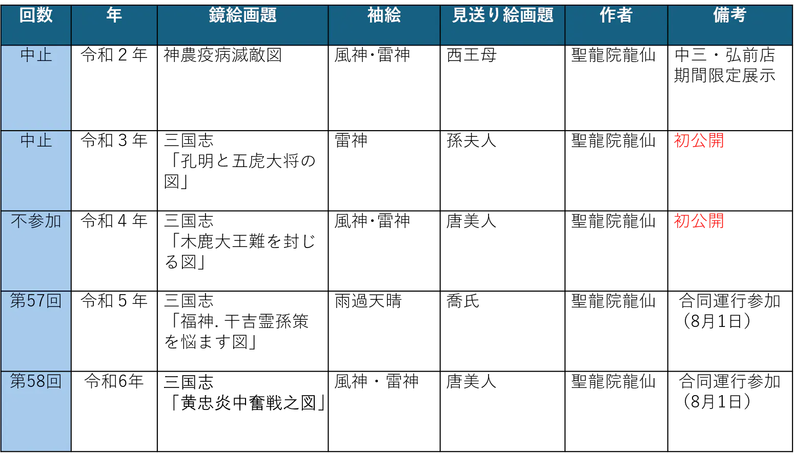 表1.弘前大学ねぷたカプセルトイの画題