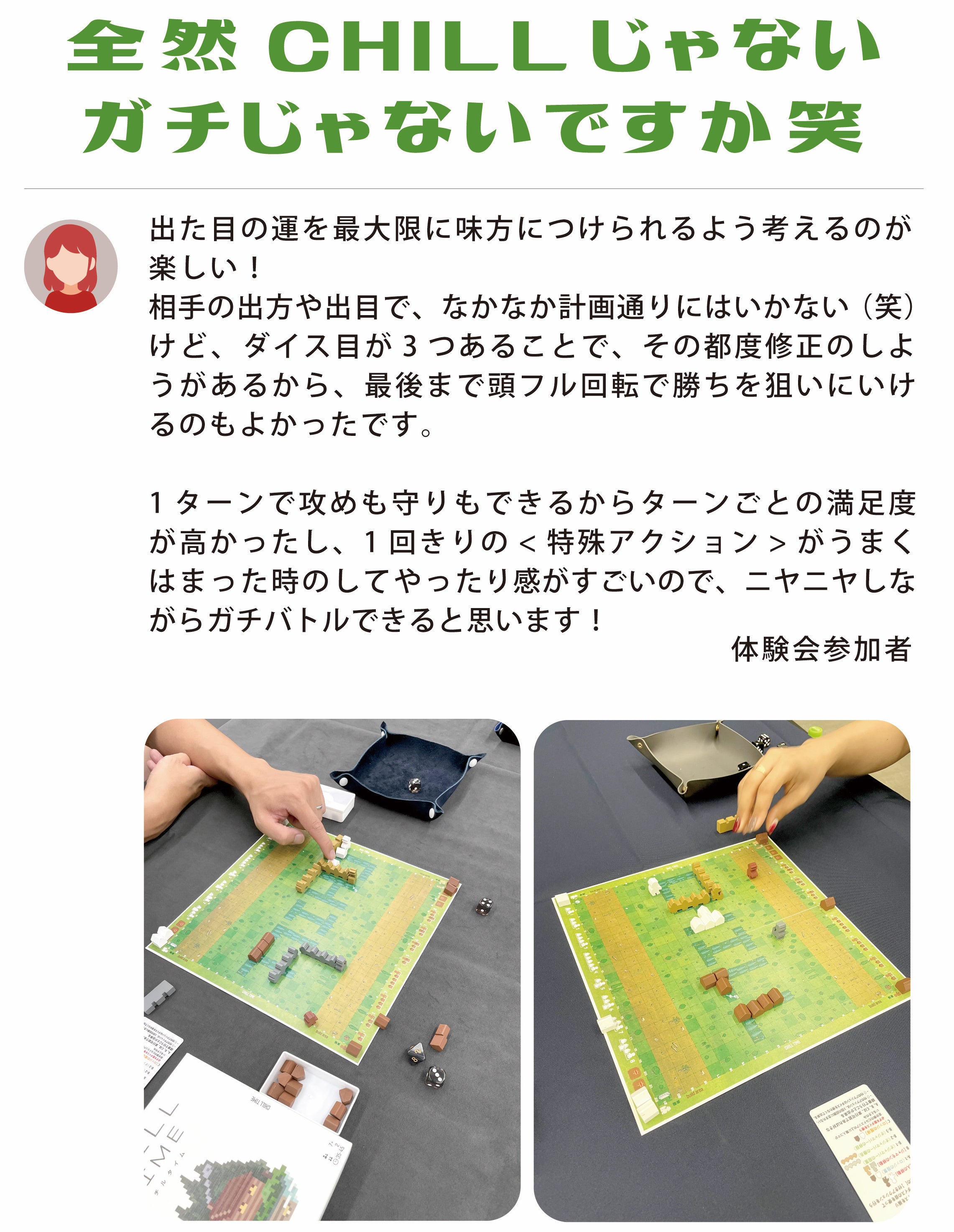 ボードゲーム『CHILL TIME』をたくさんの人に届け、皆様の日々を楽しく彩りたい!!!