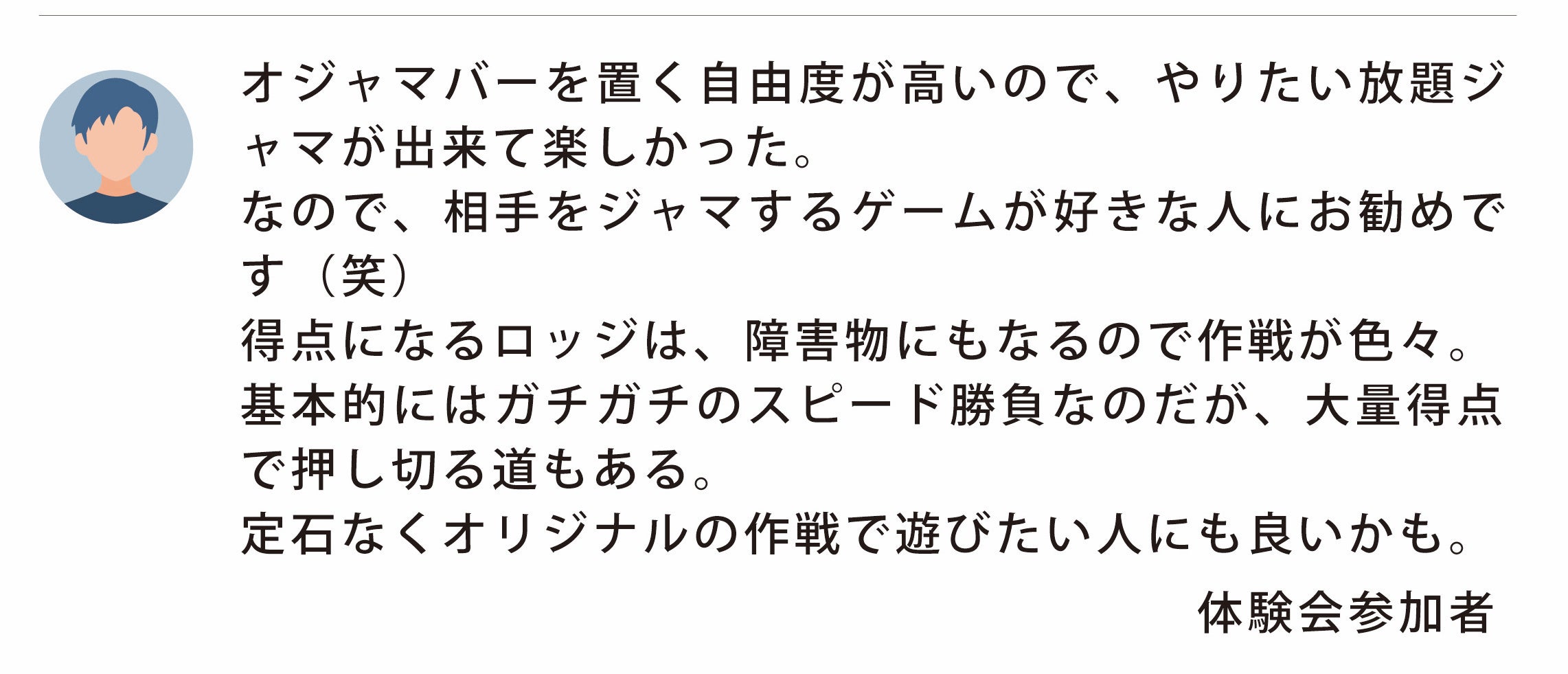 2024/10/25 18:07いやー、夢が一つ叶いました!! 世界一になりたくないですか? 人生は一度きりだし、短い!! オリンピックとか色々、いまから世界知目指すのは大変。(てか無理) そこで、自作のゲームで(競技人口が少ないうちに)大会開いて優勝すれば、世界一じゃね? まあ、それは冗談として(半分本気)、自分が作ったゲームでしのぎを削って戦ってもらえたらとても幸福なことです。それが実現しました。 平日夜に、1日で終わるように8名のトーナメント制の大会を設計しました。 3連勝すれば優勝!!いざまいる☆【トーナメント表のドラマ】 トーナメントは作者である私(YouSay)が右端に陣取り、あとは、会場に到着した順に、名前を好きな場所に記入して頂いた。ノイズさん➡クサカくん➡はーいさん➡かけまちゃさん➡一那さん➡ニシオカさん➡タマさんの順でエントリー(記憶違いがあれば修正します) 作者であるYouSayの横は(経験者であることから)残るかと言われていたが、かけまちゃさんが、進んでエントリー『いやー、勝っても負けてもおいしいでしょ!!』との事、うーん燃えるぜ!!※私は、ボドゲ初心者の方なのであまり強くないです。(スプレンダーもツォルキンも多分5回くらいしかやったことない) 【大会初戦第一投の出目が!!】 大会 第一回戦、喧嘩を売られた(笑)かけまちゃさんとの闘い。 ジャンケンの結果、私が先手。 負けられない戦いがここにある、と第一投!!の、出目が『4.4.4.7』 これは、初手でロッジが絶対に持てない、地獄の出目。(ビルドエリアに入れない)※7歩進んで、4歩戻れば、ビルドエリアには入れるが、8面ダイスを消費してるので、もてない。 ここから、苦しい苦しい、激闘が始まるのであった・・・・ 動画なども、撮影したので、余力があれば、今後、プレイ動画をアップしたいのだが テロップ付けたり編集作業したことないので出来るのか??余力があるのか??不明です。 大会は、大盛況で、やはり、生粋のボードゲーマーさん達は強かった!! しかーし、やってはいけないことをやる男!!私、さまざまな苦境を逆転に次ぐ逆転で乗り切り(相手の見落としや出目の運など)なんと主催者にして、作者にして優勝してしまいました(W)一番やっちゃダメじゃない!! まあ、接待ゲームは絶対しないので、全力で戦いましたが、それでも、かなりの苦戦で、たぶん、一回戦も、二回戦も、誰も私が勝つと思ってなかったと思います。それほどピンチでした。 決勝は、初めてリードして、リードを守って横綱相撲が出来た感じありましたが。 防衛戦もして、連続4試合やったら、脳から糖分が欠如しました(笑) このゲームは、1日2回までくらいが丁度良いです。生きた心地がしないので。 4卓横並びで戦ってたのですが、『うわー!!どっちにしてもなんだよなーーー!!』と、まさかの同時で同じ悲鳴が開場に悲響き渡った時には笑いました。その感想が出るゲームですよね!!楽しい大会となりました☆ 【嬉しい 悲鳴 ご意見を沢山いただきました!!】『軽く1000種類を超えるボドゲをやってきて、2名用のゲームは、大体定番の、バトルラインとかガイスターとか、数種類にやるのが決まってきちゃってる。』 『そんな中、CHILLTIMEは、新たな選択肢として面白い、またやりたくなるゲーム!!』 と、ご好評を頂きました。 『これは、沢山の人に知ってもらいたいけど、やらないと面白いことが分からない。』 『フォアシュピールも、都合が悪く参加できないので、宣伝が出来ずにかわいそうだね。』 『戦略と運のバランスが絶妙!!定石が定まらなくて良い!!』 遊んだ人ならではの、色々とご意見を頂き、凄く幸せでした。 〇 ゲムマ当日も、1ゲームが長いので、試遊卓は無しで出店しますので、皆さん 遊びたい時は、東京にお住まいでしたら、ランビーフィッシュさんにお出かけください!! ルール説明もしてもらえて、快適に遊べます☆ クラウドファンディングも残り 一週間を切り 【 6日 】となりました!! 引き続き、応援宜しくお願い致します!!ボードゲームカフェ&ショップ 【ランビーフィッシュ】新宿から電車で10分 調布から電車で5分京王線 千歳烏山駅西口 徒歩30秒東京都世田谷区南烏山5-17-11 三栄ビル3FTEL:03-5969-9043 もっと見る