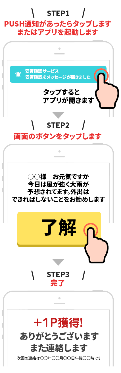 3.使用者側:アプリから確認ボタンを押す(タップ)するだけで終わり。