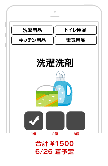 ➞外出が少し面倒な時、またはできない時に必要な品物についてオンライン購入を代わりに行うサービス。