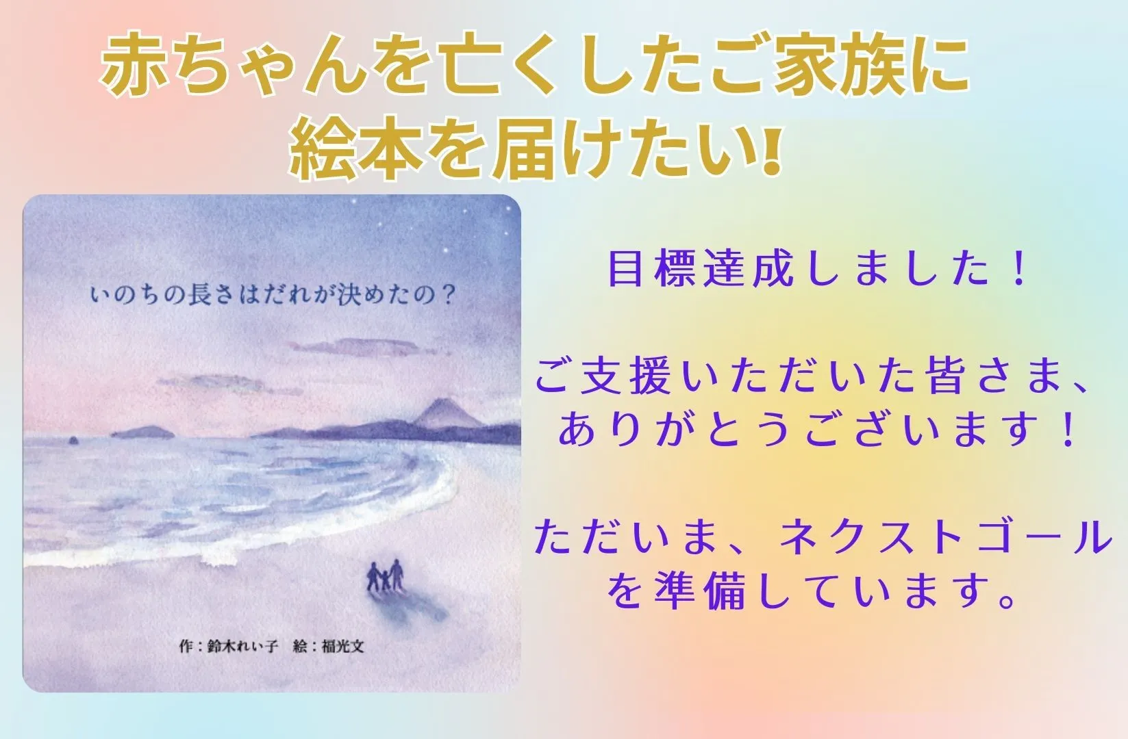 この絵本が、一人でも多くの悲しむご家族のもとへ届き、心の支えとなることを心から願っています。また、このプロジェクトを通じて、社会全体に流産や死産にまつわる理解と寛容が広がっていくことを期待しています。皆様の温かい支援とご協力を心よりお待ちしております。