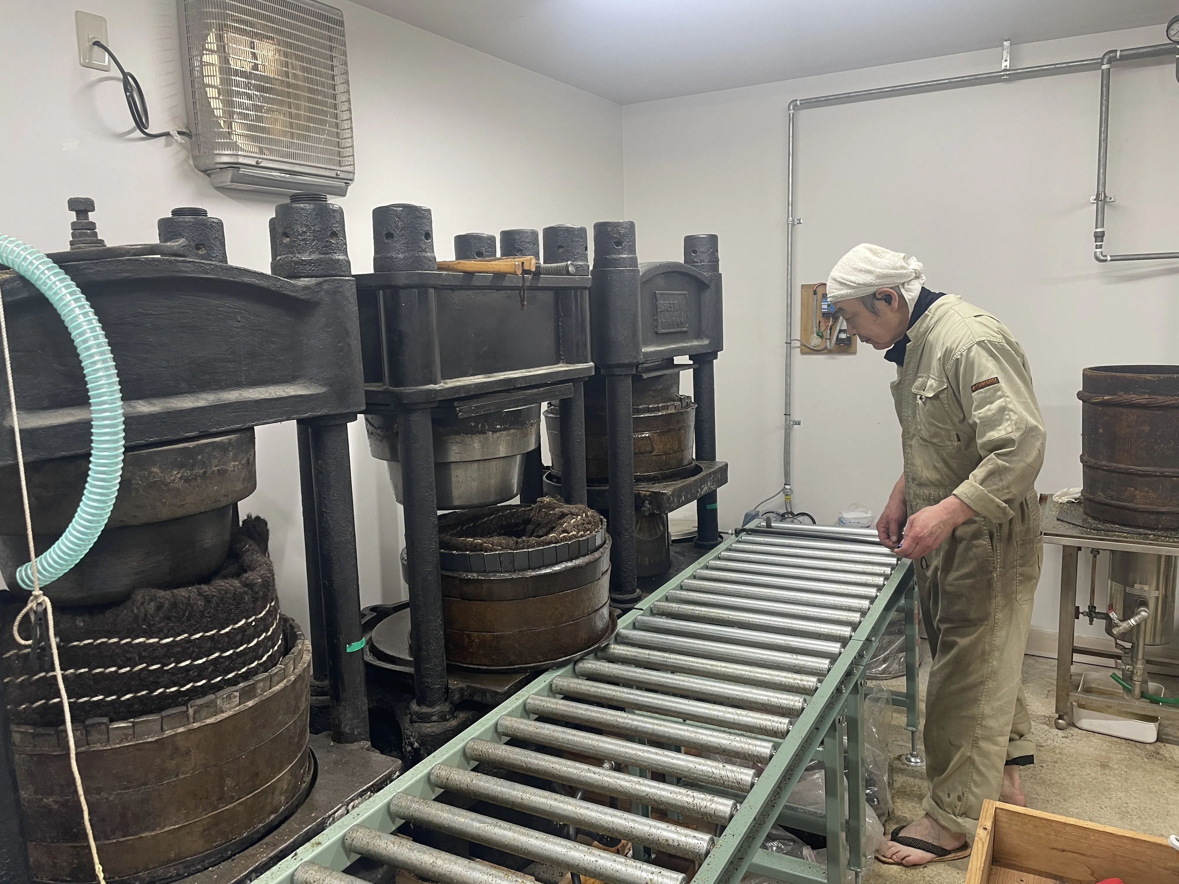 菜種やゴマを丸ごと搾る昔からの技術は、6代目の平出祐一さんによって大切に守られてきました。
