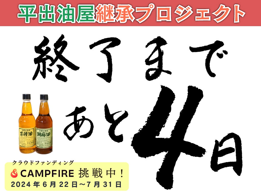 終了まであと4日となりました。これまでのご支援、応援ありがとうございます。