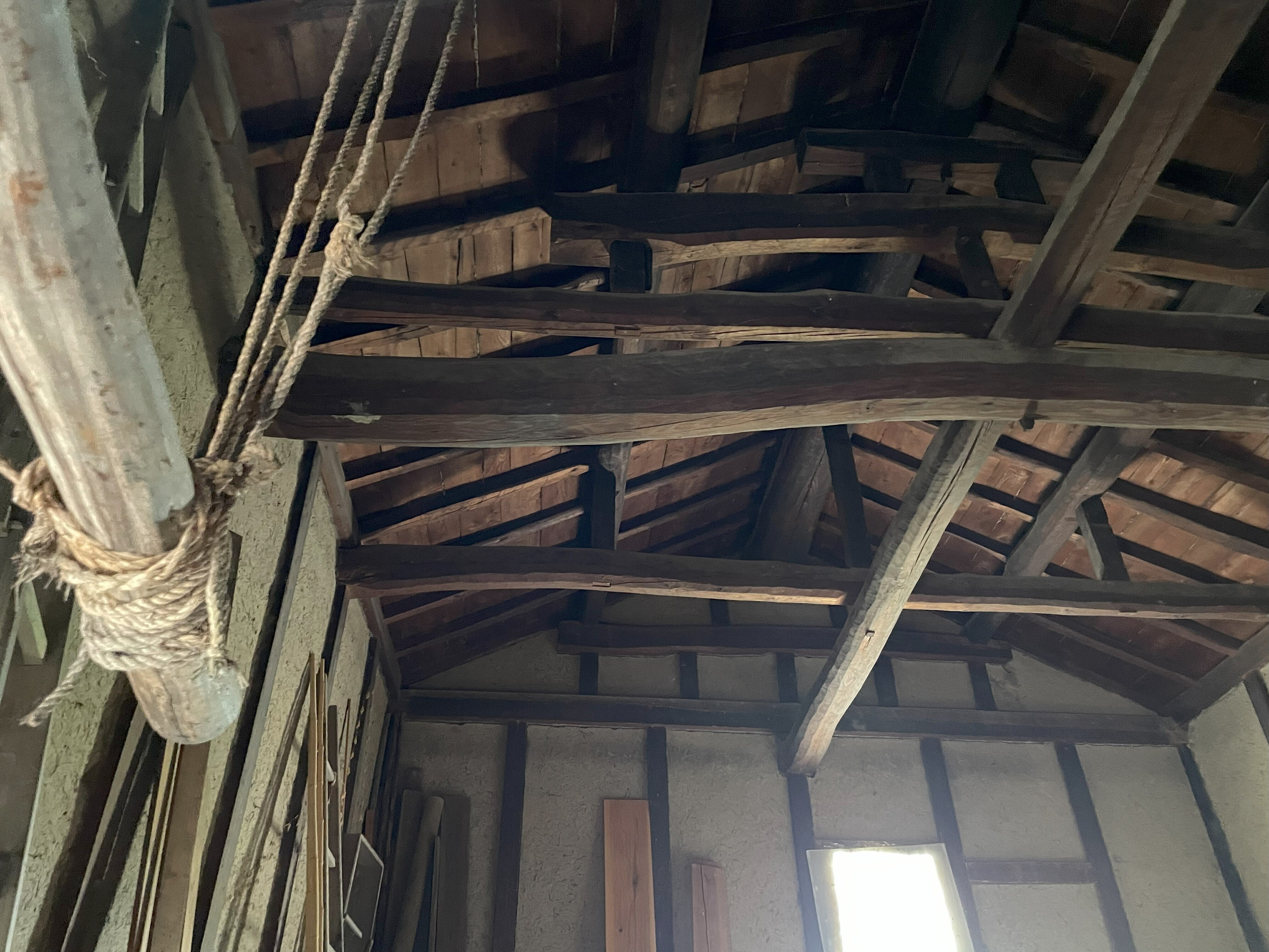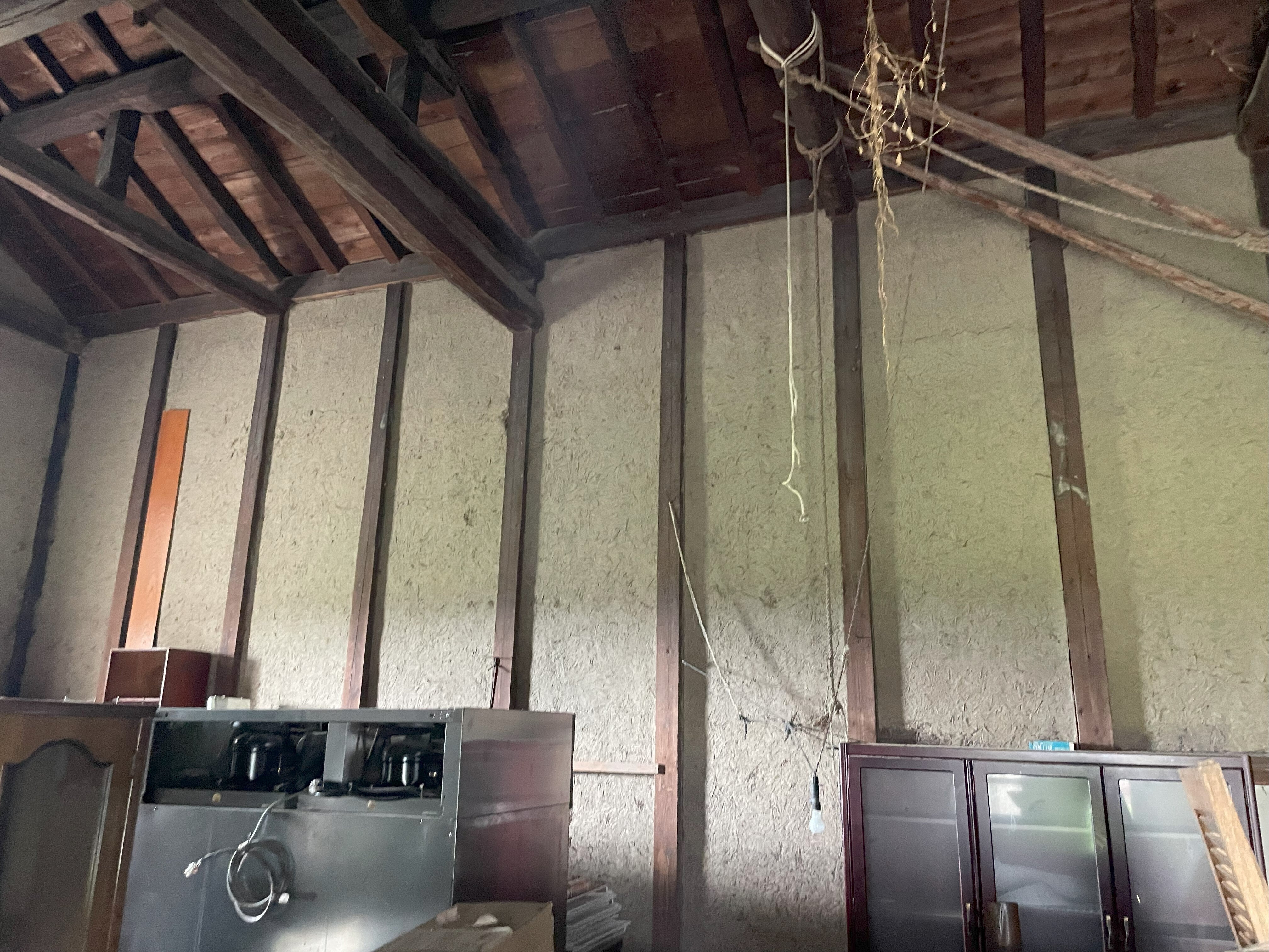 以下は保健所に見せた写真で、1枚目は内部の上の方を写したもの。梁の下に天井を作ります。