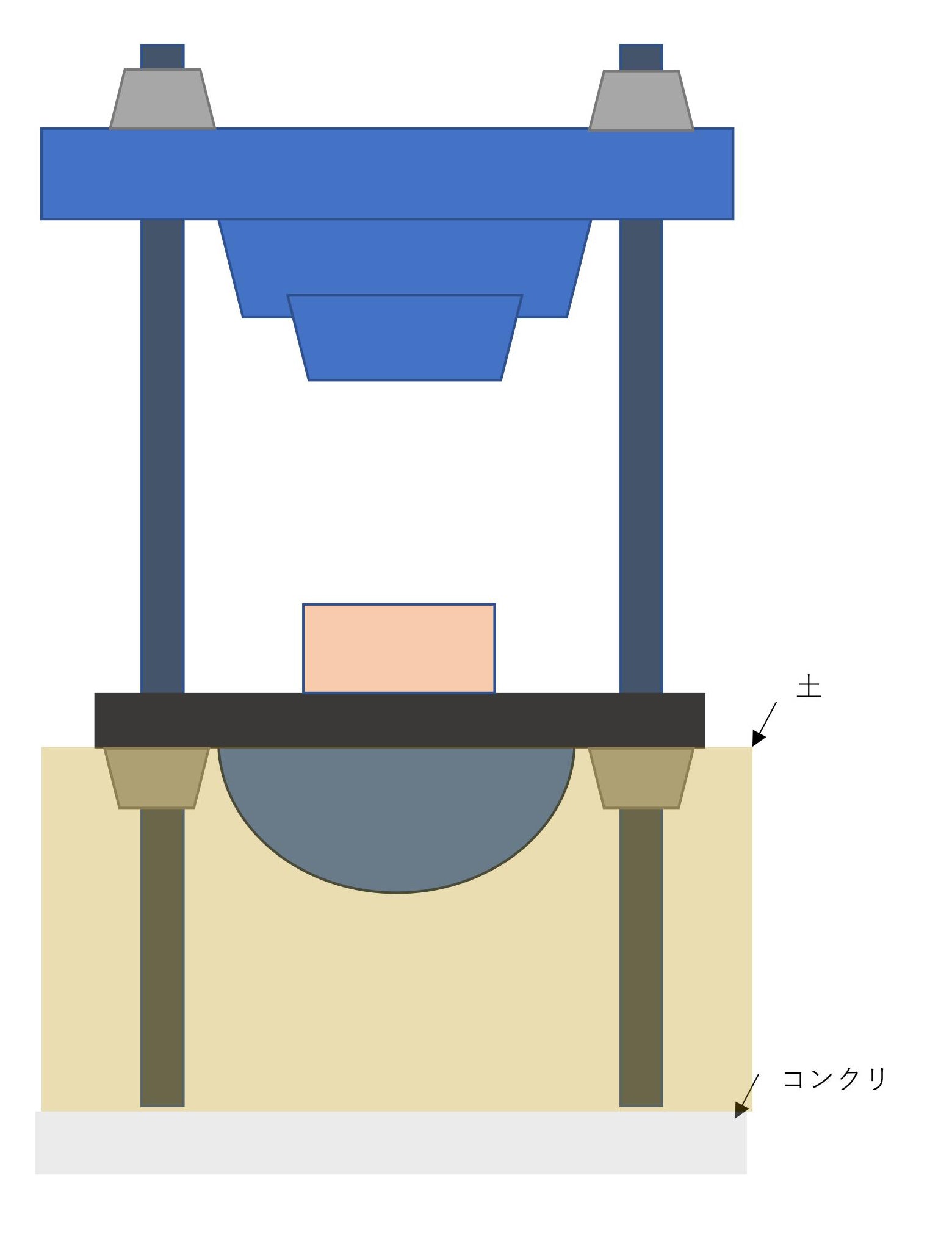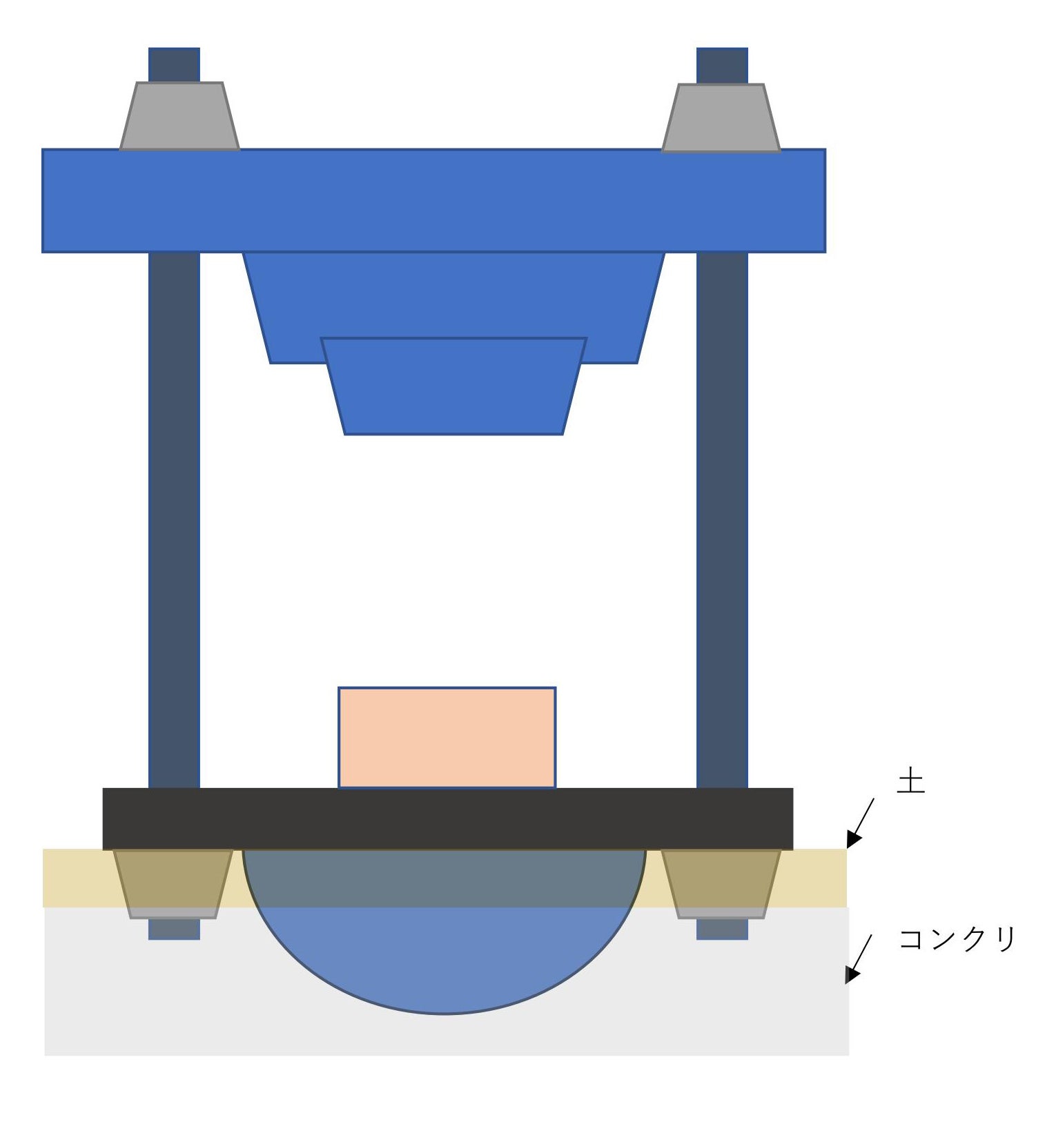 当初は、玉締め機に長い脚がついていて、その下のコンクリの上に立ち、間を土で埋めてあるという想定でした。