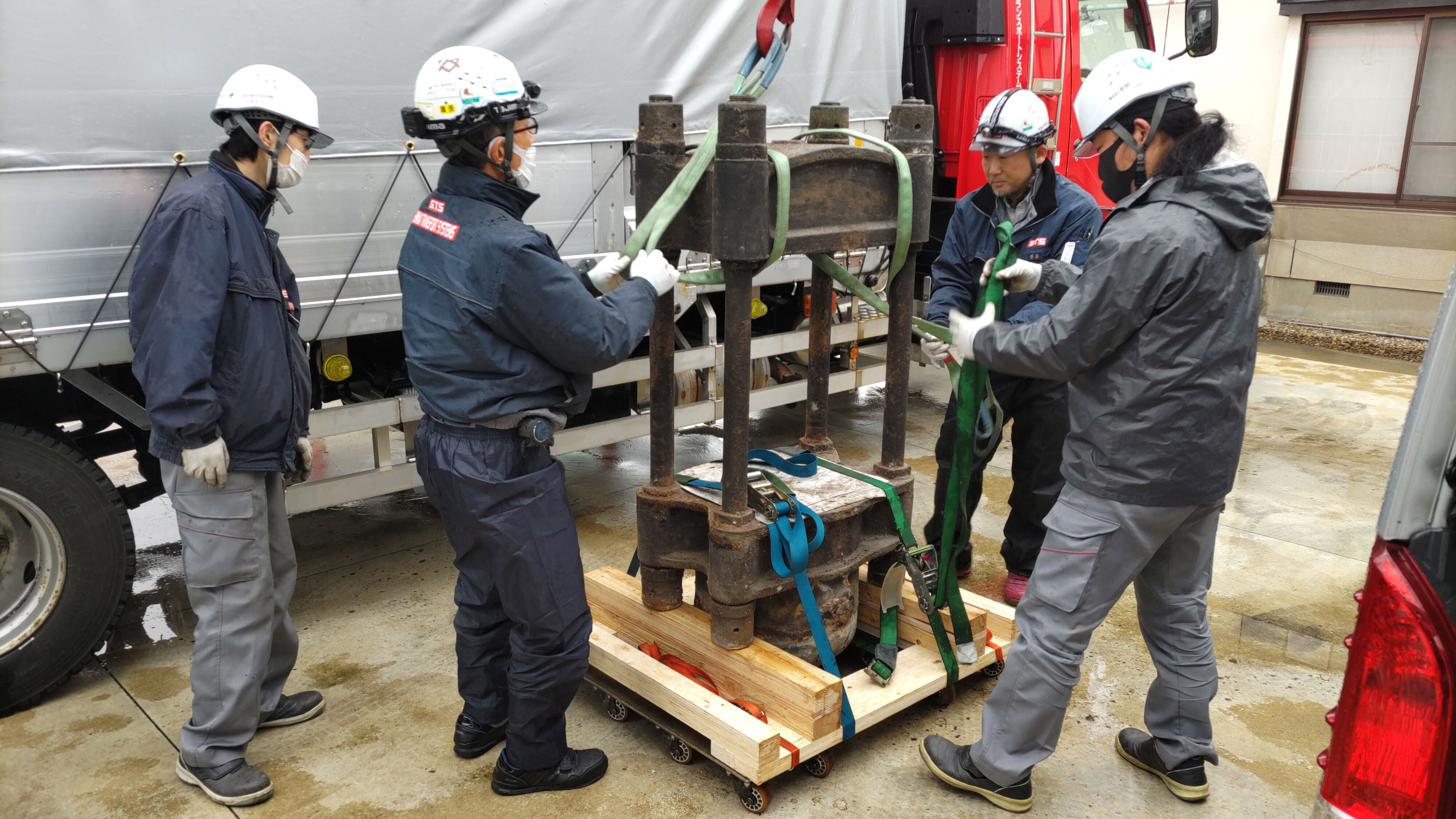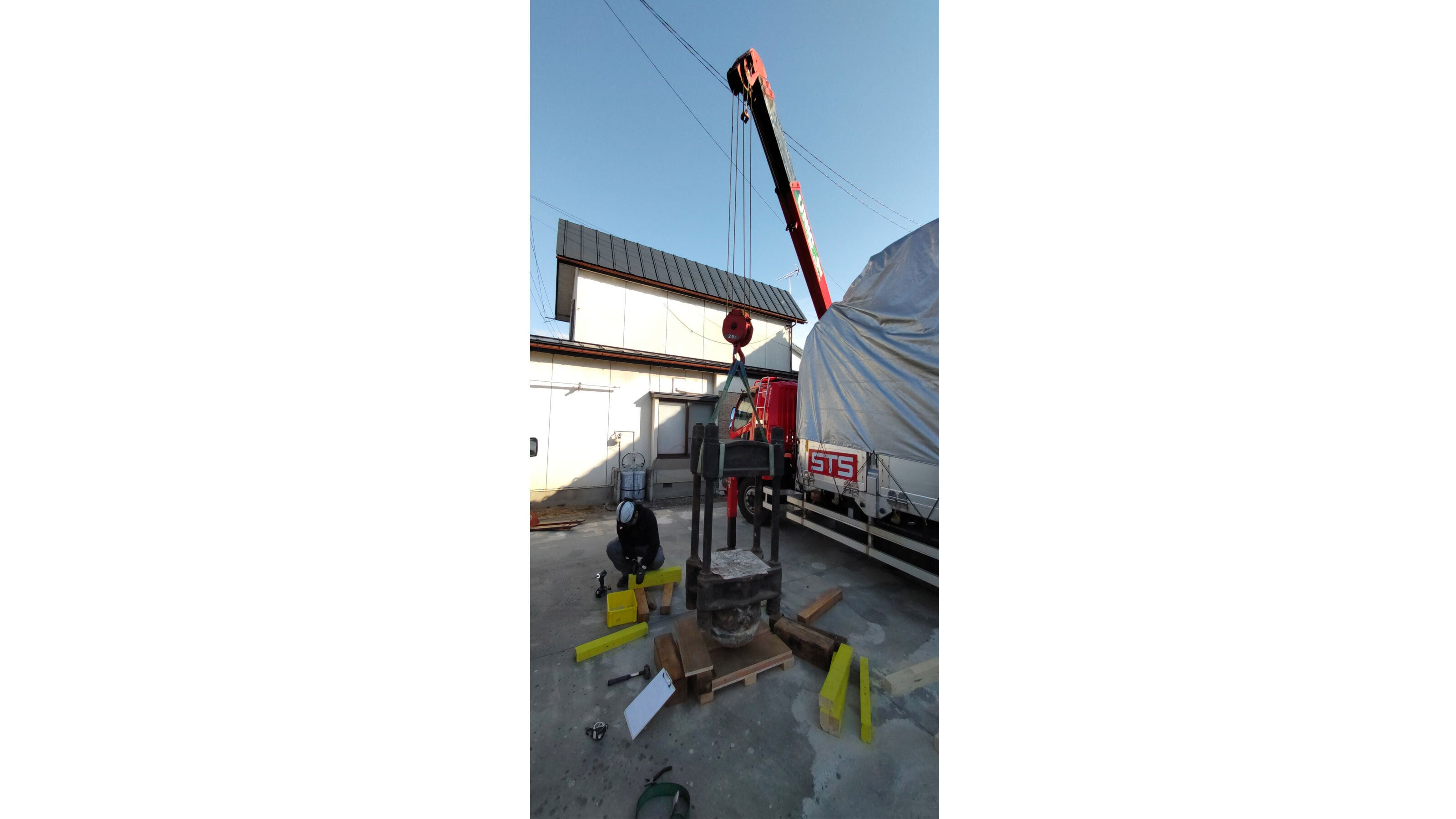 クレーンで吊り上げる準備をします。
