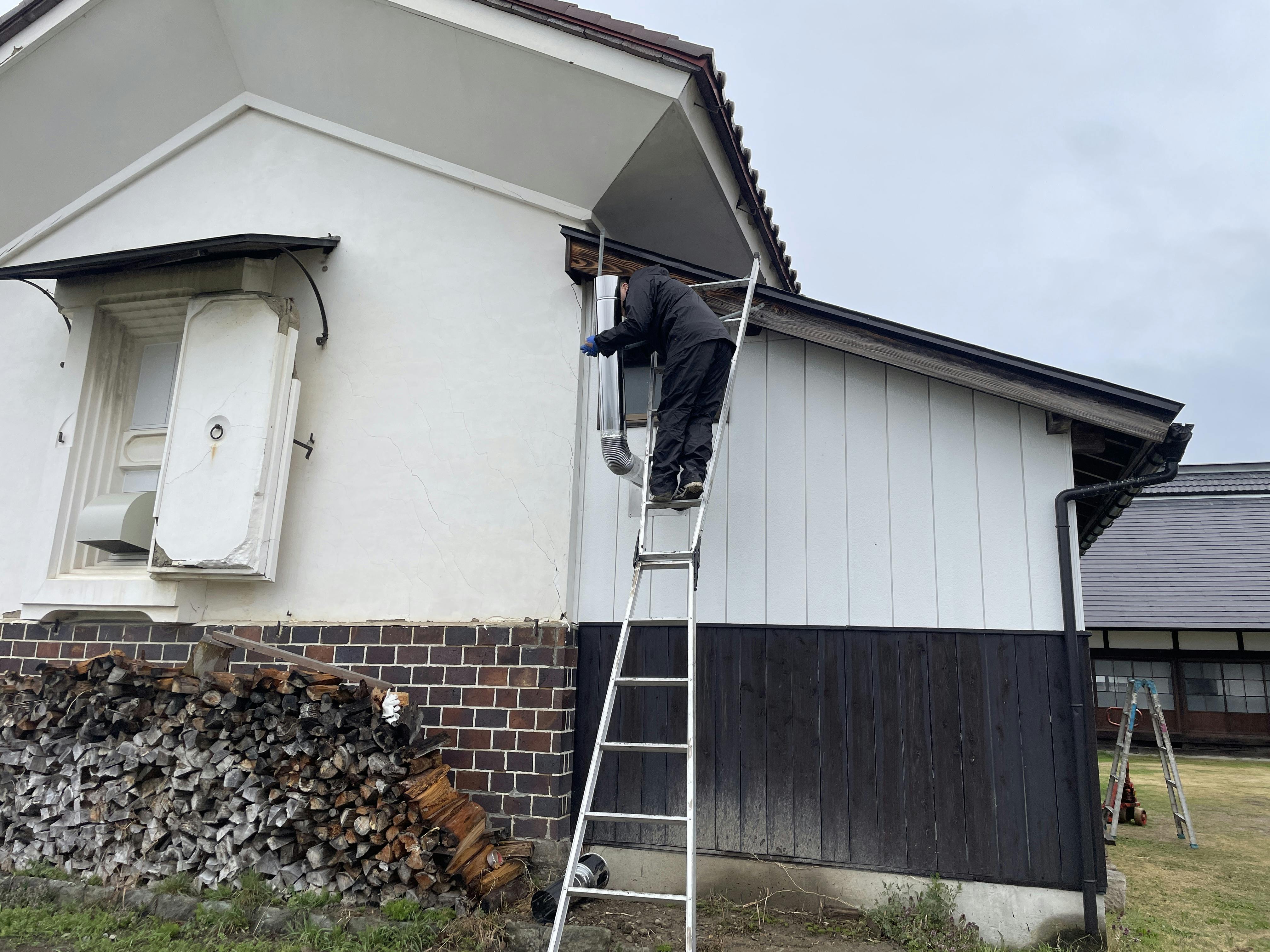 焙煎炉用の煙突工事 4/16(水)~4/17(木)