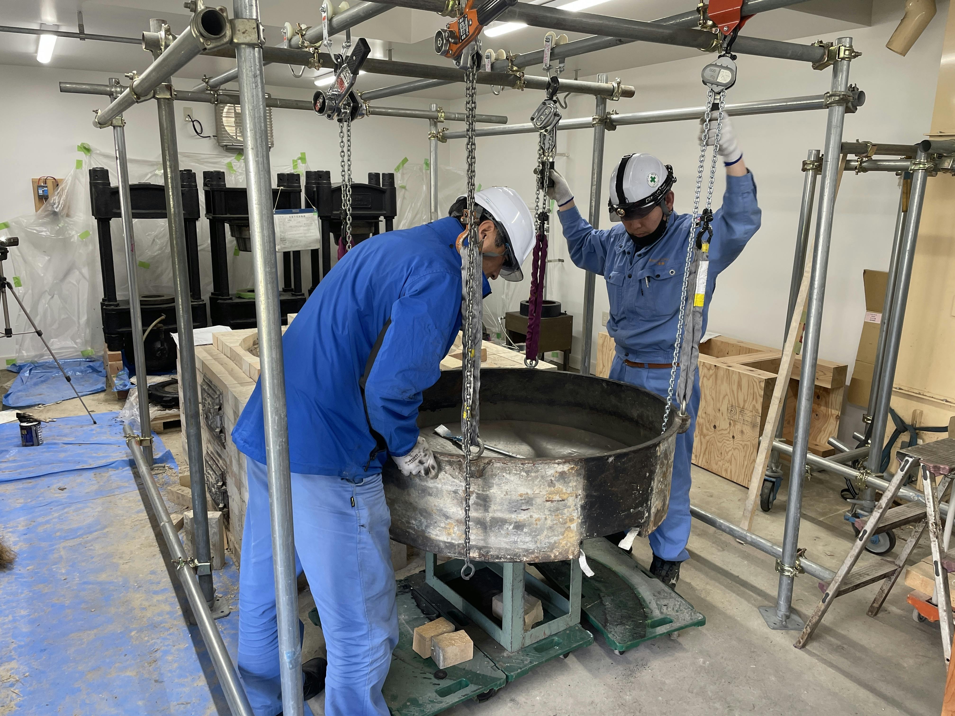 慎重に鉄釜を移動します。