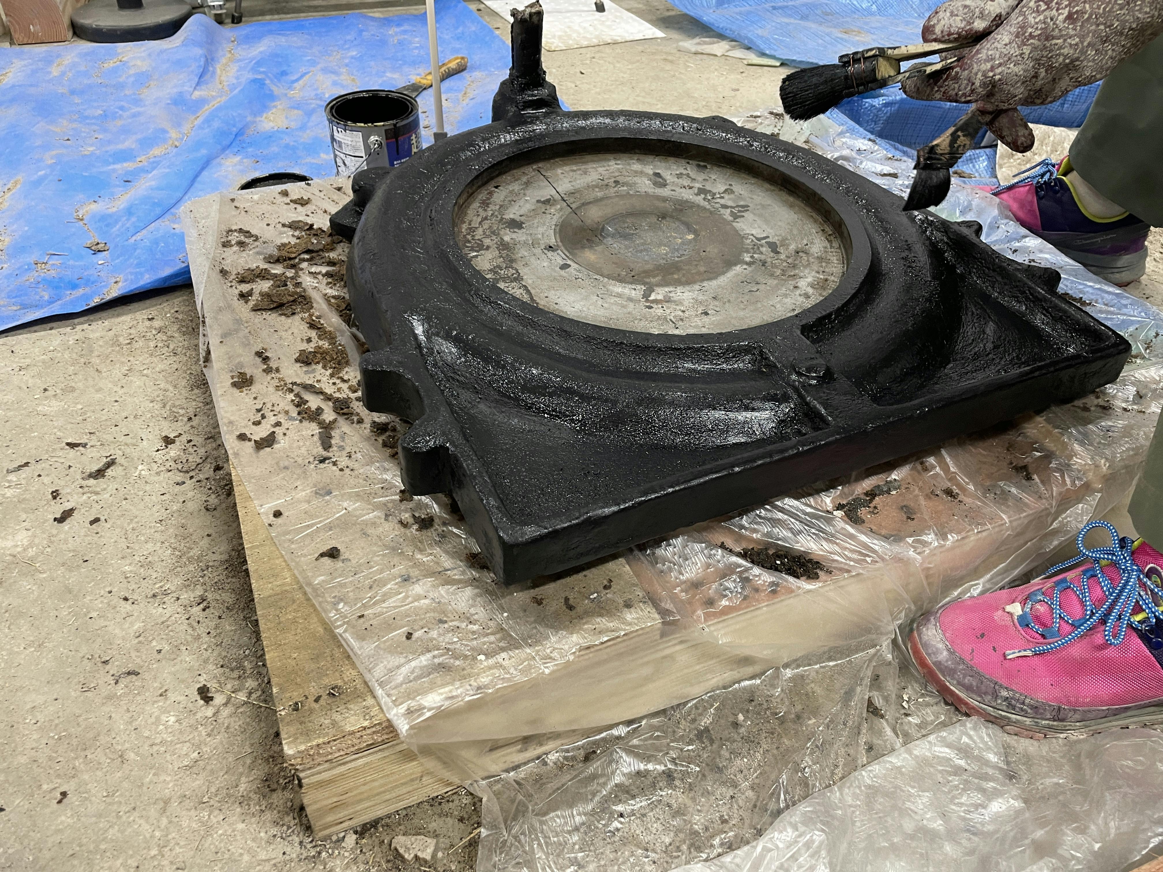 この日は、玉締め機の油受けの裏面の汚れを落として塗装もしました。長年の汚れを落とすのが大変でした。