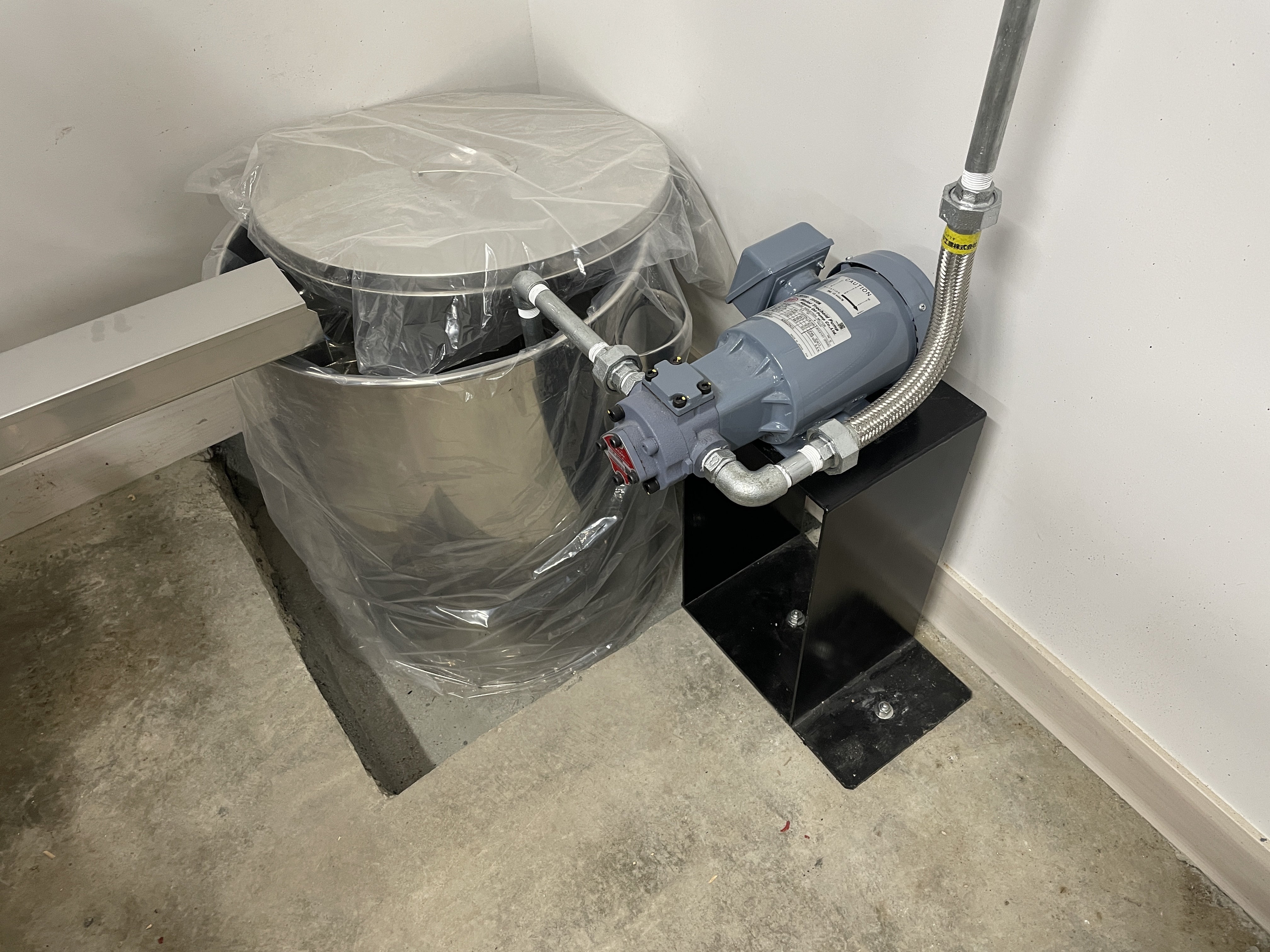 6/25(水) 1次貯油槽から2次貯油槽へ油をポンプで送る送油管がつながりました。