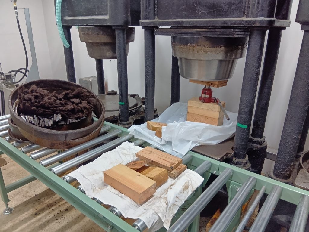 さて、これで設備関係が完成と思い、油圧ユニットを作動させてパッキンを交換した玉締め機のピストンを上げてみると、スムーズに上昇。ついに完成!と思ったのもつかの間、ピストンと台座がなかなか下がらない。新しいパッキンがきついのか。。。