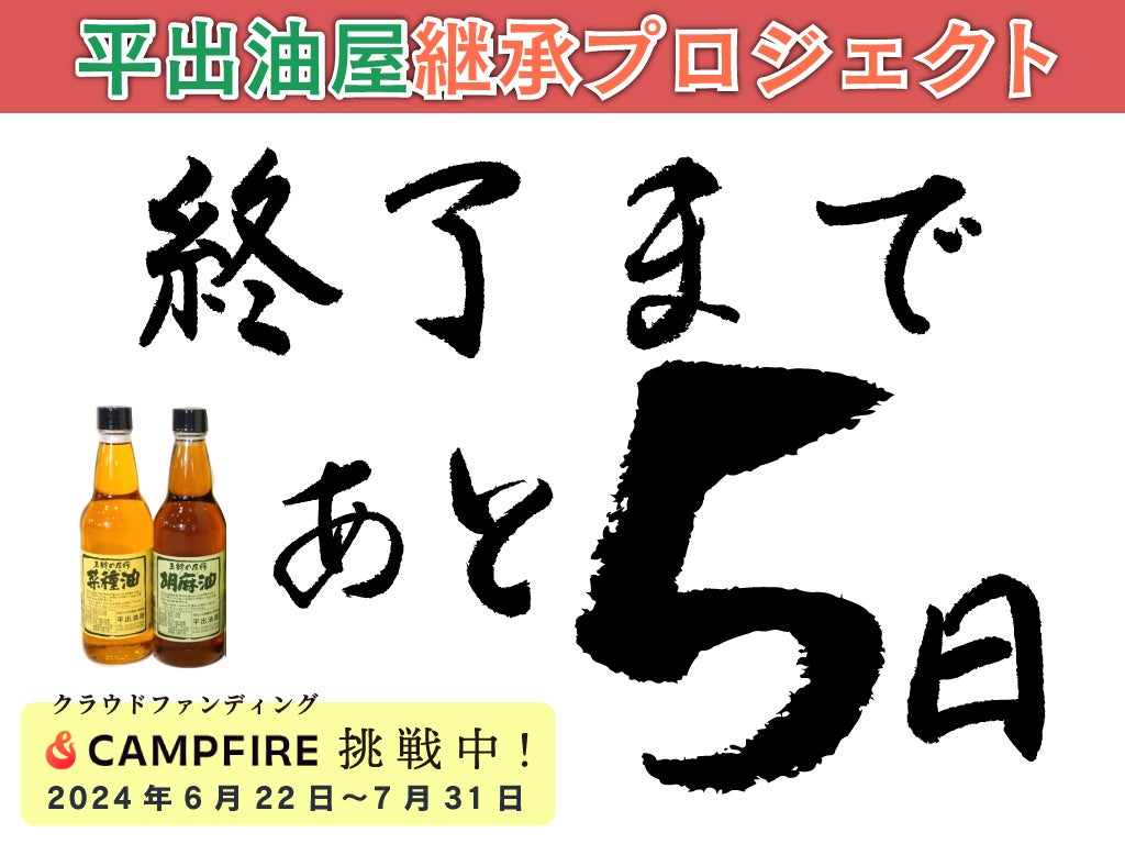 残り5日となりました!ネクストゴール達成のためにご協力をお願いします。