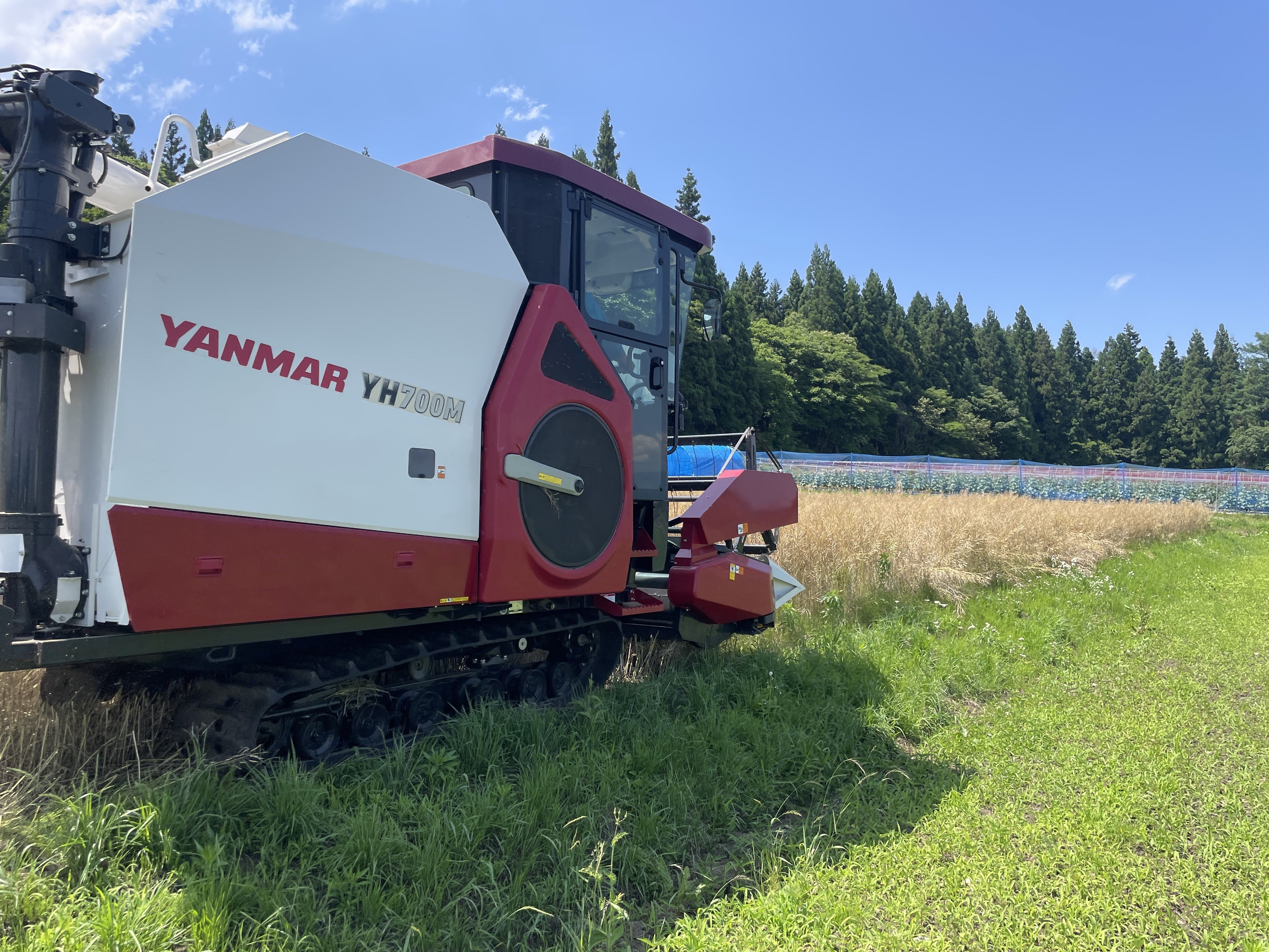6/8(日)~6/22(日)の活動報告です。工場づくり 6/17(火)、玉締め機に油樋設置入手に時間のかかったステンレス部材を、玉川エンジニアリングさんが油樋(あぶらとい)に加工し玉締め機に設置してくれました。搾った油が油樋を流れ、奥の貯油槽(タンク)に溜まります。油樋にはフタがつけられますが、現場の寸法に合わせて加工中です。ナタネ確保に向けて工場づくりは、遅れてはいますが完成に近づいています。でも、菜種油を搾るには原料のナタネを確保しなければなりません。平出油屋さんの仕入れルートをアテにしていましたが、平出さんに確認してもらったところ、どの仕入れ先も取り扱いをやめてしまっていました。えーっ!?ピンチです。自力で何とか仕入れルートを見つけなければいけません。6/16(月) 知り合いの製油会社へ協力依頼平出さんからも連絡を入れてもらい、福島県二本松市にある知り合いの製油会社を訪問。本年度産のナタネを少しでも分けて欲しいとお願いしました。協力していただけるということでしたが、昨年はその会社が必要とするナタネの4割程度しか確保できなかったということなので、産地での収穫量次第とのことでした。8月中旬にどの程度分けてもらえるかが、わかるそうです。豊作を祈るしかありません。6/17(火) 八木沢菜の花会のナタネ搬入5月の菜の花フェスティバルの見学に行った八木沢菜の花会(会津美里町)から、昨年度産のナタネを搾る依頼(委託)を受け、原料のナタネを搾油工場のある紅葉庵に搬入してもらいました。およそ600kgあります。およそ半分を使用して搾油しビン詰めして菜の花会に納品します。残りのナタネは譲ってくれるそうです。ありがたや!6/18(水) 八木沢菜の花会のナタネ刈り取り八木沢菜の花会のご好意で、本年度産のナタネも譲っていただけるということで、知り合いの農家グループに刈り取りを依頼し、僕も立ち会いました。畑は3枚。30度超えの暑い日でしたが、絶好の刈り取り日和でした。刈り取ったナタネをコンバインから軽トラに移します。その場で篩(フルイ)にかけて、ゴミをとります。翌6/19(金)、紅葉庵で1日天日乾燥しました。梅雨に入っているにも関わらず終日好天で、乾燥終了。あとは唐箕(とうみ)にかけて、残ったゴミを飛ばして調製(収穫後、ゴミをとったり乾燥して製品にすること)完了です。それはまた後日。おかげで、譲ってもらえる一昨々年、昨年度産約300Kgと本年度産約150Kgあわせて約450Kgが確保できました。すごい量と思う方もいるかもしれませんが、1日搾ると250Kg(10袋)消費し、3割弱が油になります。campfireでのクラウドファンディングのリターン(お返し)用の菜種油に若干足りません。別の農家が、ナタネを少し栽培してくれたので、まずはそちらに期待します。ウチの豆腐屋用や販売用に菜種油を搾るには、さらに何トンも必要です。月に4回搾ると1トン必要なので、できれば10トンは確保したいところです。さらにあちこち当たってみます。6/22(日) 唐箕と納品用ビンの搬入八木沢菜の花会が菜種油を詰めるビンと借りる電動唐箕を紅葉庵に搬入してくれました。まだ先ですが、テストを兼ねて油を搾り、そのビンに詰めて納品することになっています。下の写真は借りる電動唐箕です。天日干ししたナタネのゴミを飛ばします。下の写真は油を詰めて納品するビンとキャップです。工場の完成を急がないと。2025/6/22記
