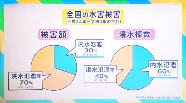 A.泥の浸水被害の6割は、内水氾濫です。