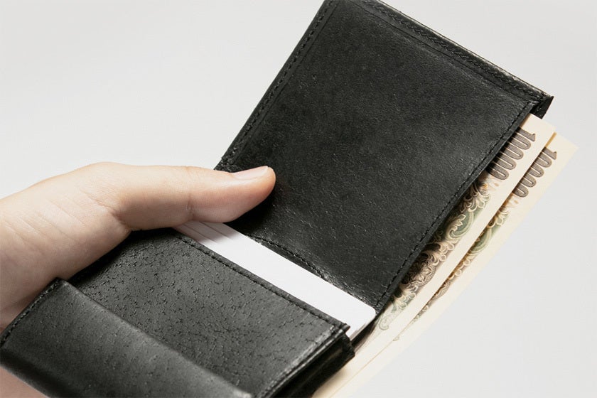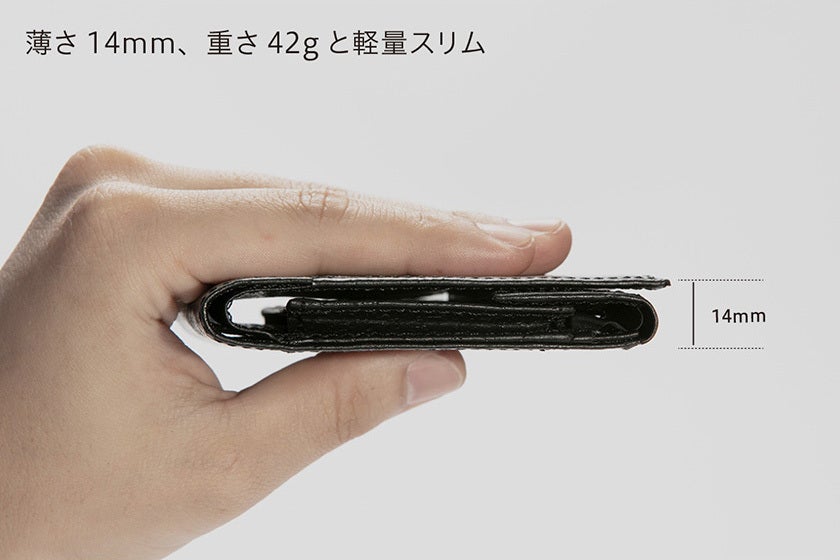 財布の使い方を限定しません。キャッシュレス化が進む社会に向けてカードだけ財布に入れる人も、紙幣・コイン・カードなど普通の財布の使い方をする人も快適に使えるハイブリッド構造の薄い二つ折り革財布です。