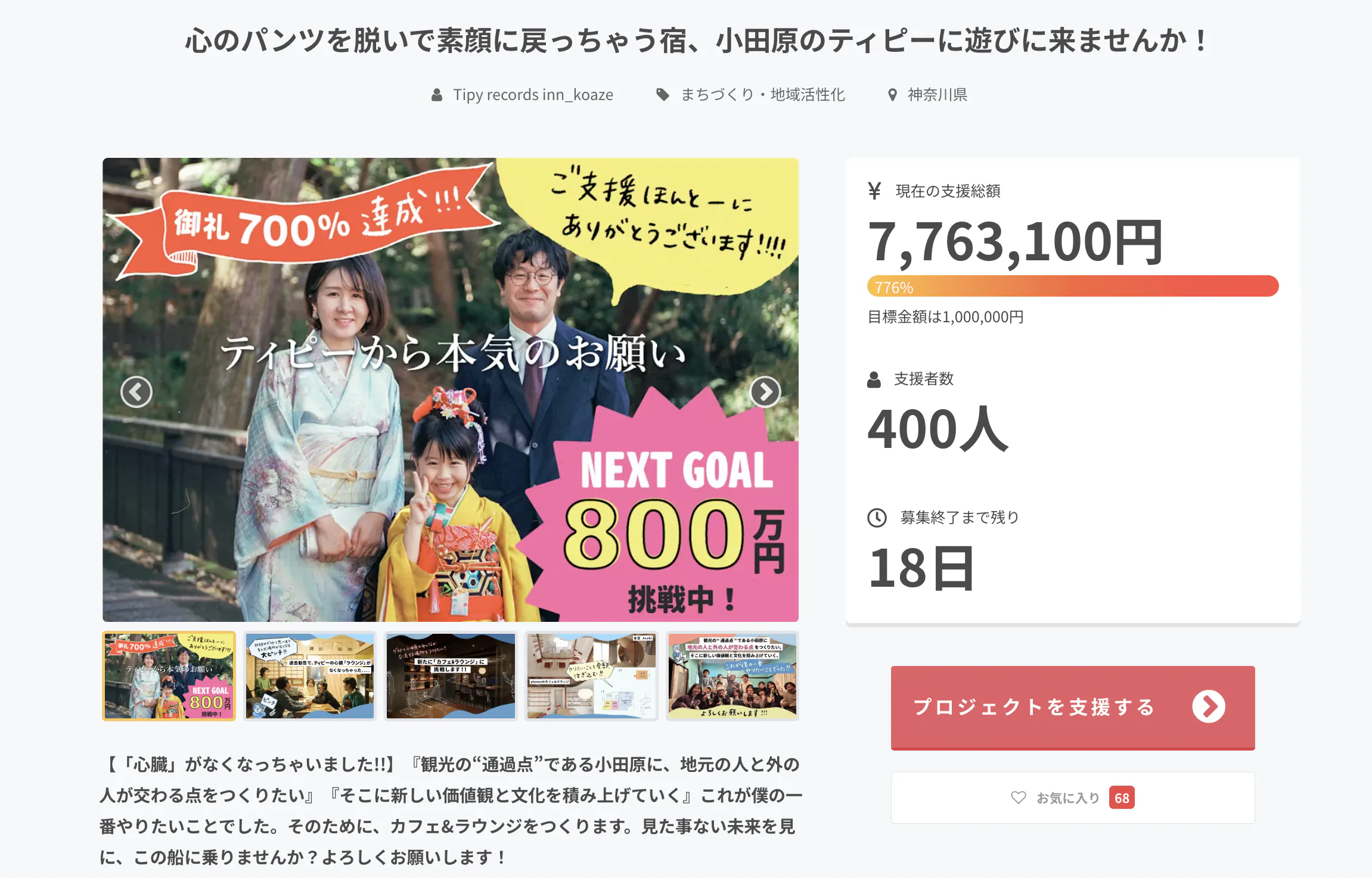 なんと!先ほどプロジェクト支援者が400人を超えましたー!本当に嬉しいです!