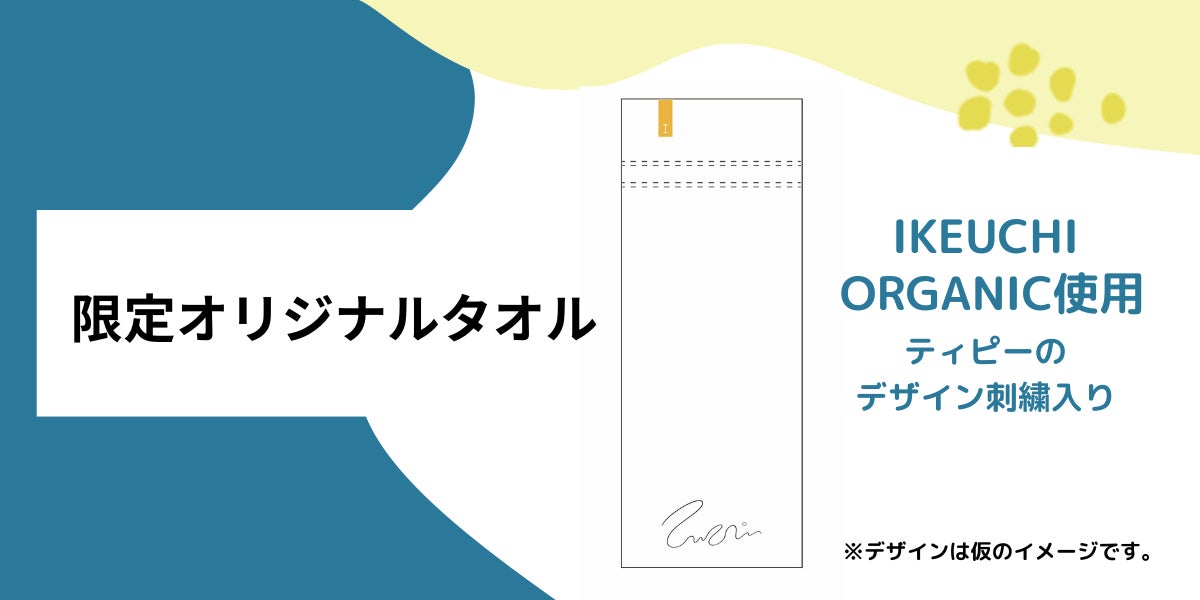 そしてタオルはいつもティピーの客室にも置いているイケウチオーガニックに刺繍ロゴ入りでお願いする予定です。イケウチのタオルはすごいんです!「赤ちゃんが食べられるタオルをつくる」を掲げているんですよ。