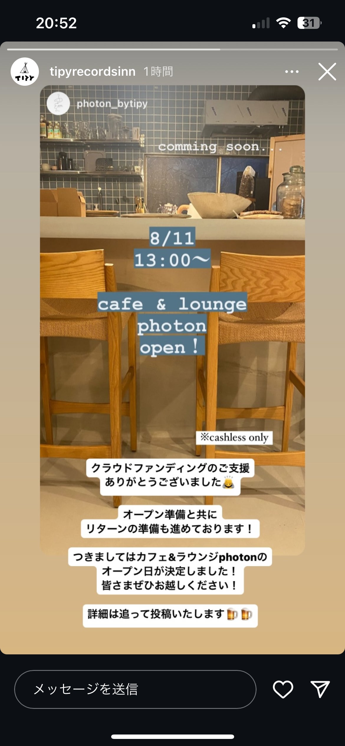 8/11の13:00にTipy records inn photonでお待ちしています。