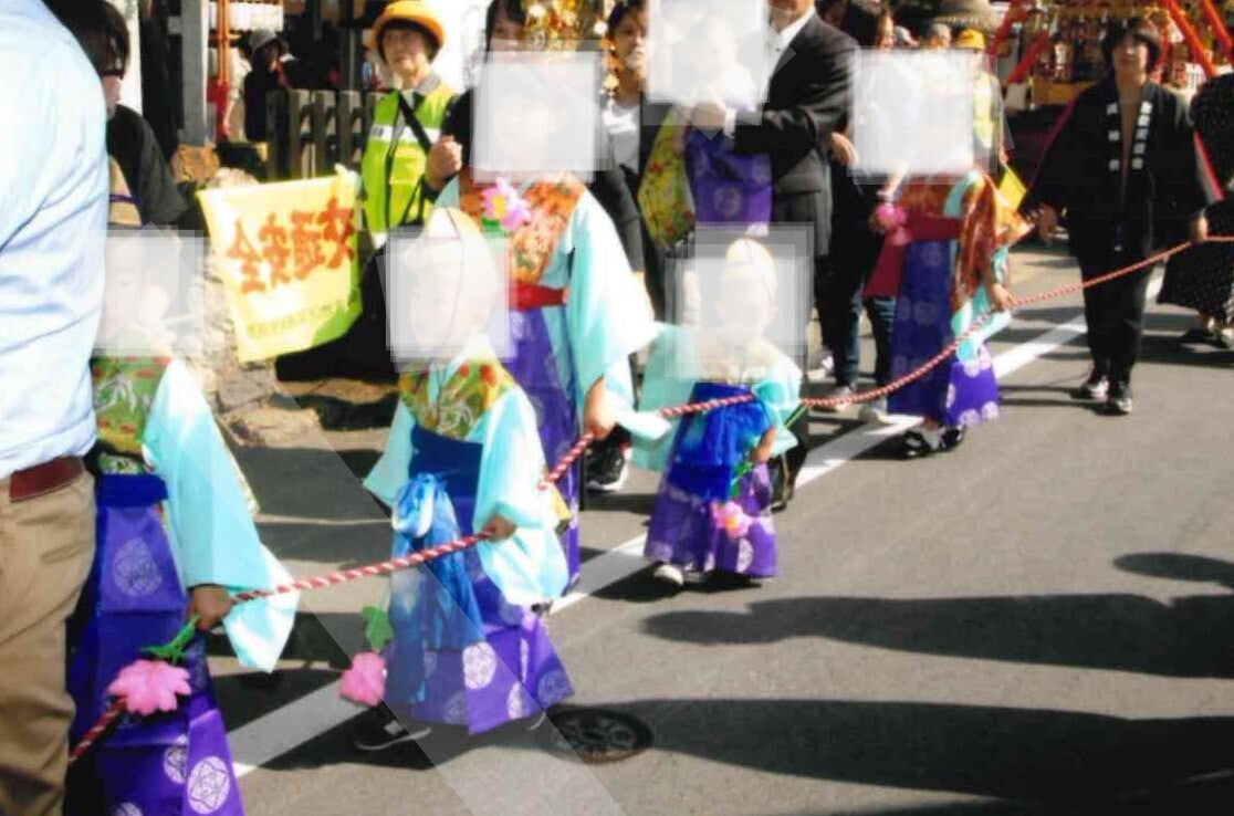 子どもの無病息災を願い天満宮の周囲を1時間ほどかけて練り歩きます。