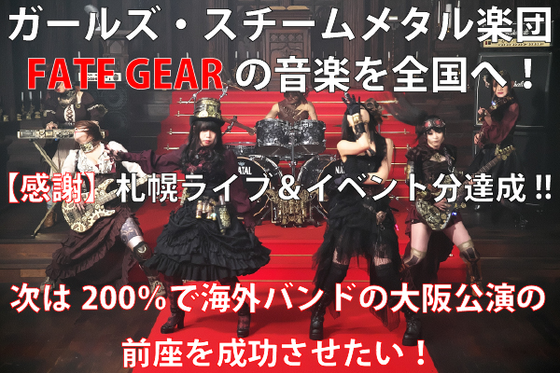 【感謝】札幌イベント&ライブ分である100%達成!次は200%で海外バンドの大阪公演のオープニングアクトを成功させたい!