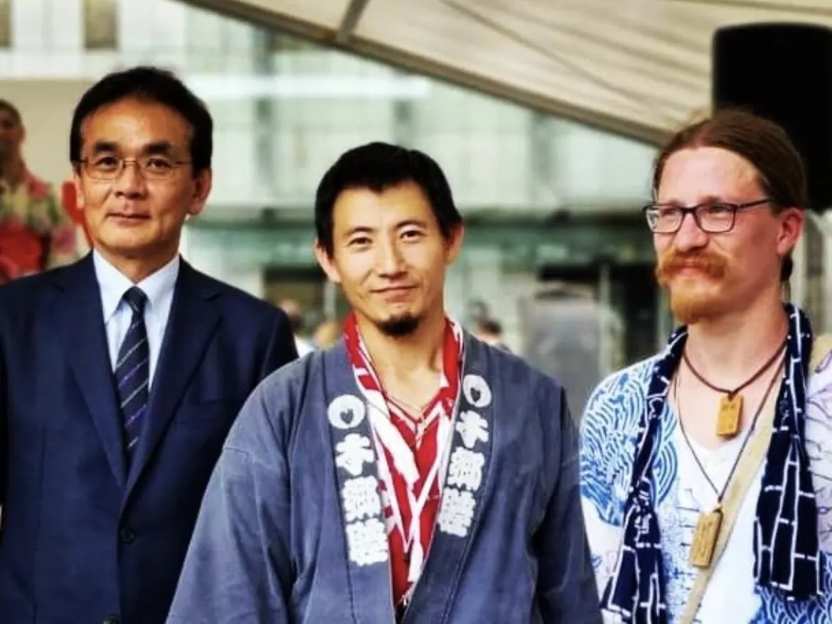 (スロベニアと日本の国交30周年での神輿渡御時の様子・大使と記念撮影)
