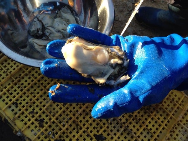 (南三陸での牡蠣養殖の様子)