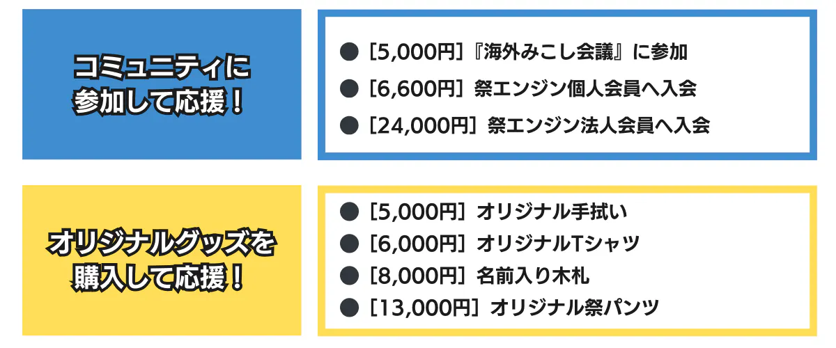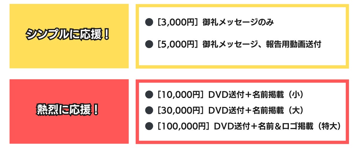 ・リターン準備費(ショートムービー撮影、編集 / オリジナルグッズの制作 等)